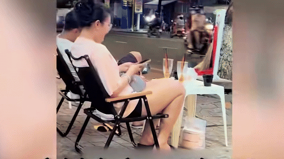 Bé gái thẩn thờ nhìn cặp đôi trong quán nước. Ảnh cắt từ clip/Nguồn: Vũ Đắc Duy