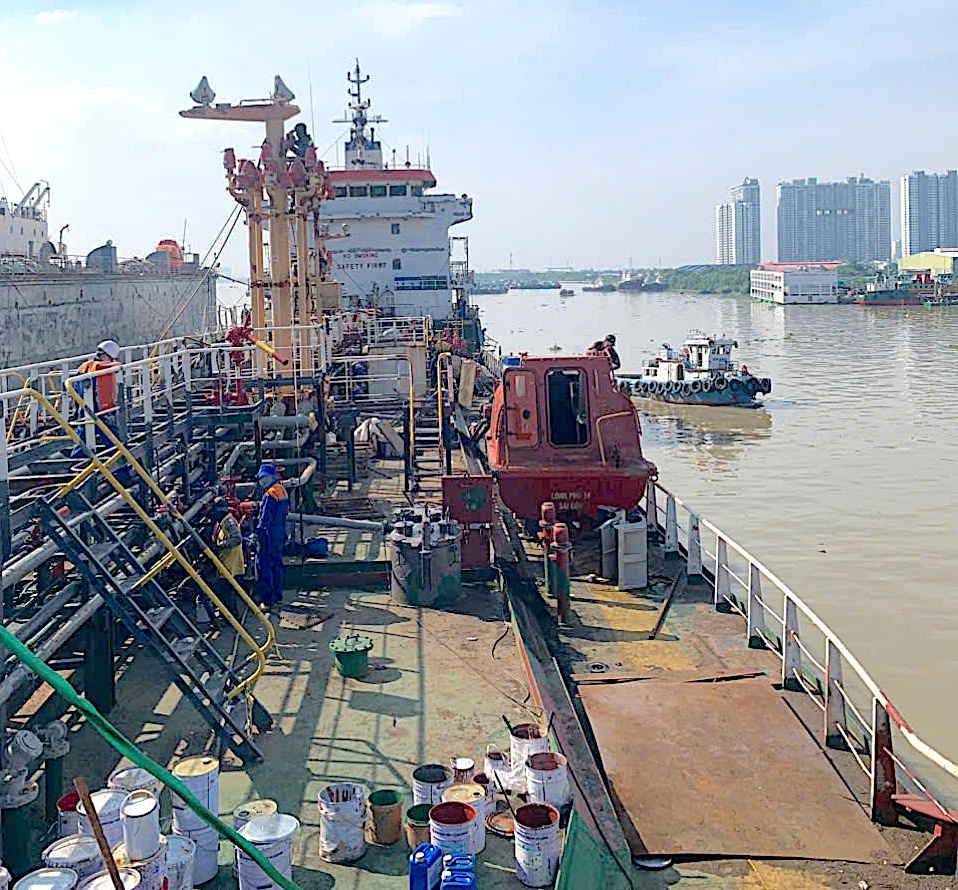 Trong xưởng máy móc, công nhân thi công các modul, block để lắp ráp, đóng mới tàu; sửa chữa, gia công cơ khí. Ngoài dock, các tốp thợ miệt mài sửa chữa tàu để đẩy nhanh tiến độ bàn giao, kịp đưa các tàu khác đang ở cầu cảng chờ tới lượt vào sửa chữa.