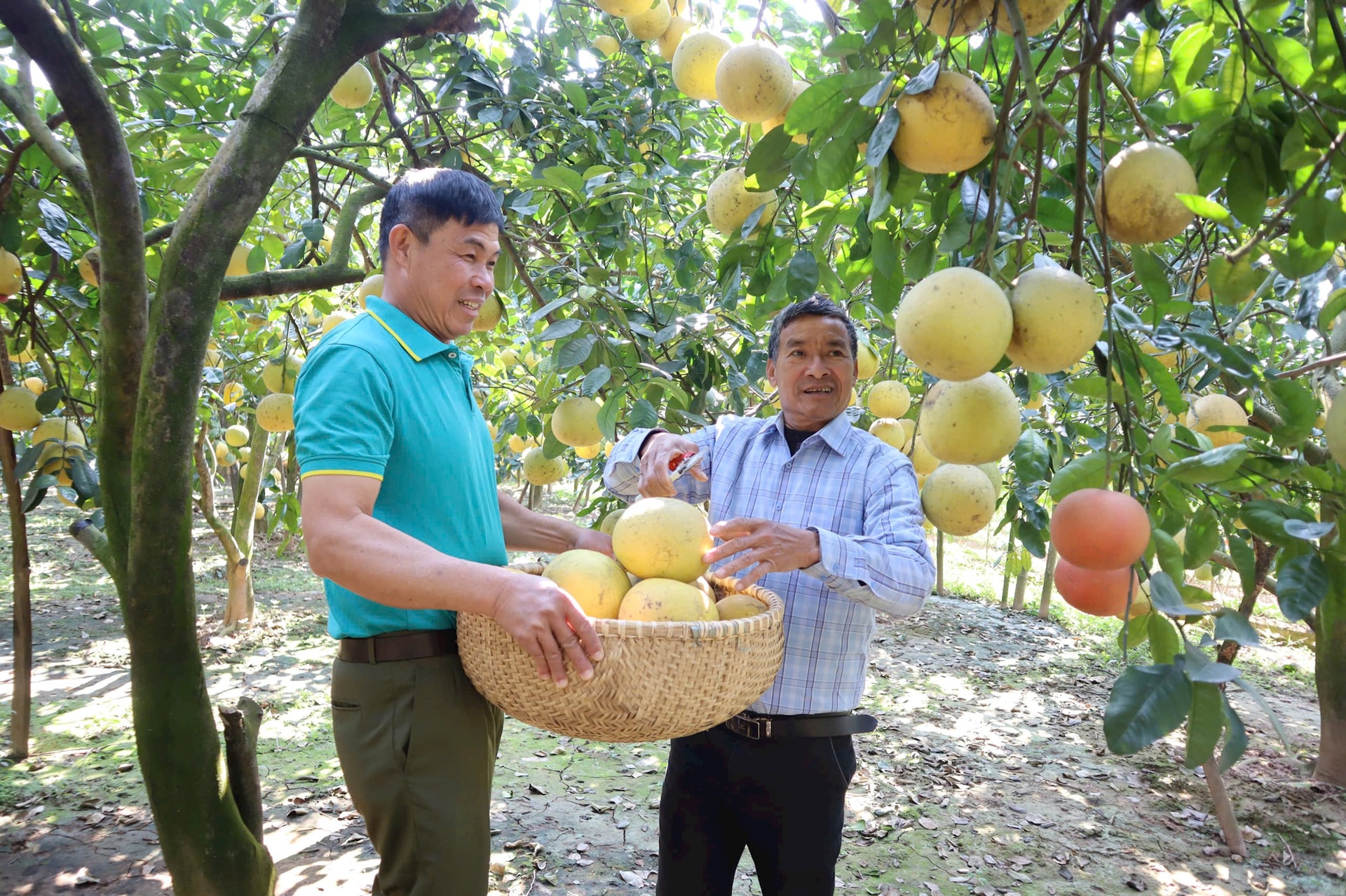Cùng thôn, ông Lê Văn Tiu được xem là một trong những “lão nông” dày dạn kinh nghiệm nhất trong trồng bưởi tại địa phương. Gia đình ông hiện có 1ha bưởi, với nhiều cây từ 30 đến 35 năm tuổi. “Trước đây khu này là đồng cao, thiếu nước, không thể cấy lúa. Chúng tôi mạnh dạn chuyển sang trồng bưởi, mua giống bưởi Diễn, bưởi tôm vàng về trồng. Thấy cây hợp đất, quả ngon, gia đình tự ghép, nhân giống để mở rộng diện tích”, ông Tiu phấn khởi nói. Với mật độ trung bình 20 gốc/sào, mỗi gốc cho 200-300 quả, năm nay gia đình ông ước thu khoảng 8 vạn quả, doanh thu sau chi phí đạt khoảng 700-800 triệu đồng/ha.