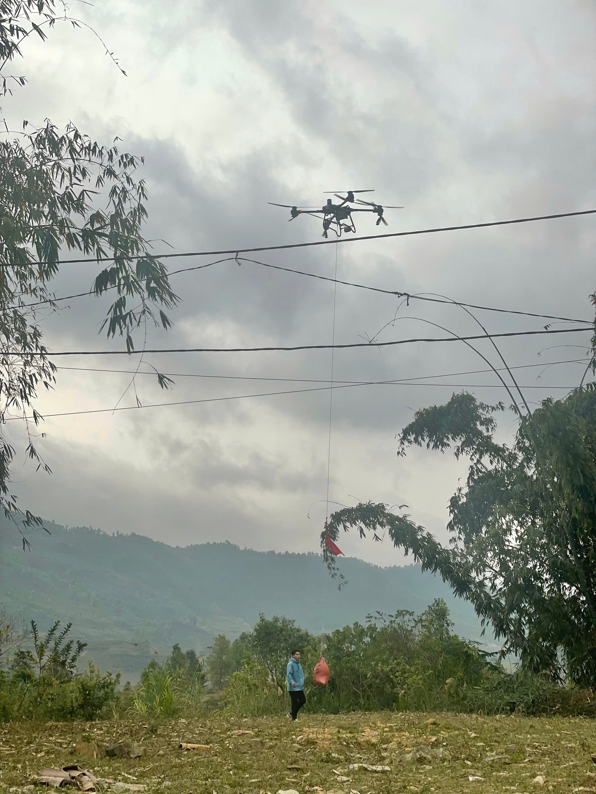 Thử nghiệm UAV vận chuyển chè Shan tuyết. Ảnh: Bộ KHCN