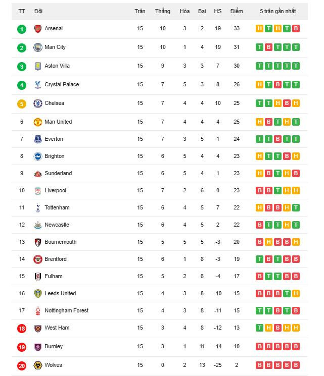 BXH Ngoại hạng Anh 2025/26 - Vòng 16 mới nhất: Nóng bỏng top 4