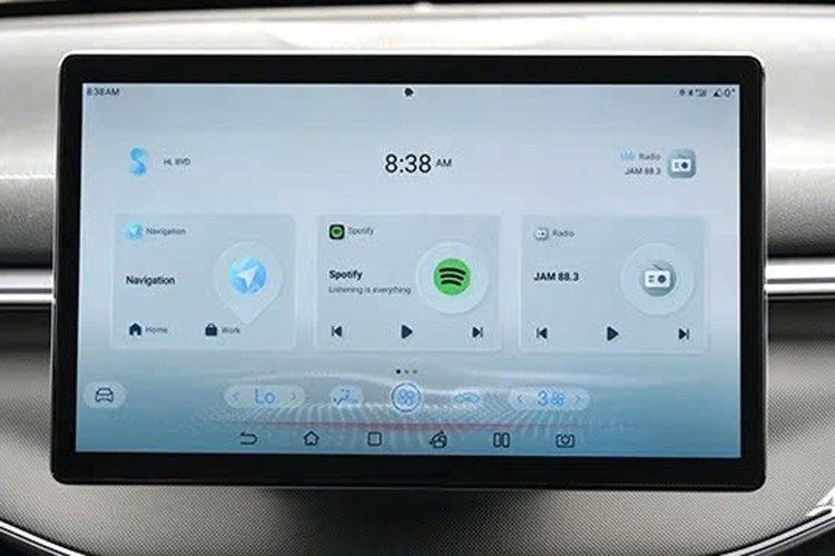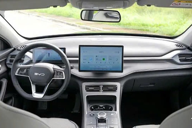 Bước vào bên trong mẫu sedan hạng C này, khách hàng Trung Quốc sẽ bắt gặp những trang bị như vô lăng 3 chấu vát đáy, bảng đồng hồ kỹ thuật số 8,8 inch và màn hình cảm ứng trung tâm 10,1 inch sử dụng hệ thống BYD DiLink.