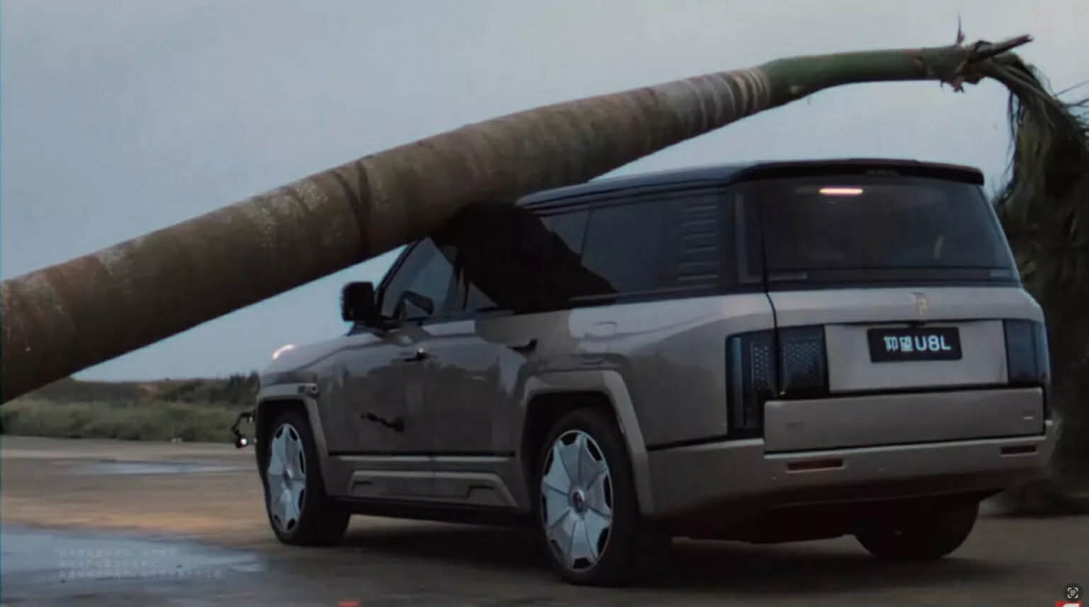 Trong thử nghiệm được BYD công bố gần đây, một cây cọ lớn cao tới 141 feet (khoảng 43 m) được dựng đứng và thả rơi tự do xuống nóc của Yangwang U8L. Cú rơi được thực hiện ba lần, mỗi lần từ độ cao tăng dần để gia tăng lực va chạm.