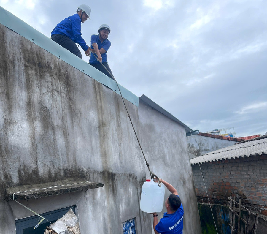 Đoàn thanh niên hỗ trợ chằng chống nhà cửa cho người dân.