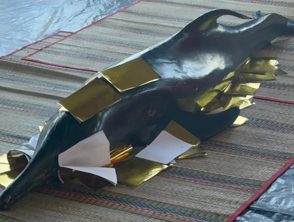 Ngư dân tổ chức mai táng cá heo. Ảnh: AB