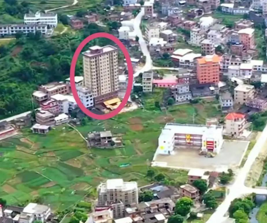 Tại một vùng nông thôn ven núi ở Phúc Kiến, nơi phần lớn nhà cửa là những ngôi nhà thấp tầng, sự xuất hiện của một tòa nhà cao 15 tầng là điều đặc biệt. Video về tòa nhà được một người dùng mạng chia sẻ gần đây nhanh chóng thu hút nhiều bình luận.
