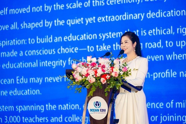 Bà Vũ Thị Thanh Loan - Tổng Giám đốc Ocean Edu phát biểu tại sự kiện kỷ niệm 19 năm