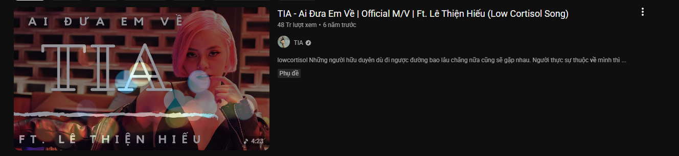 Ai Đưa Em Về là sự kết hợp của TIA và Lê Thiện Hiếu, cho đến nay đã vượt 48 triệu lượt xem trên kênh YouTube chính thức. Trước khi trào lưu "low cortisol" trở nên rầm rộ thì bài hát đã gây chú ý bởi đoạn lời "qua ba ngã năm, năm ngã ba là nhà" từng được cư dân mạng mang ra đùa cho những buổi hẹn hò cặp đôi.