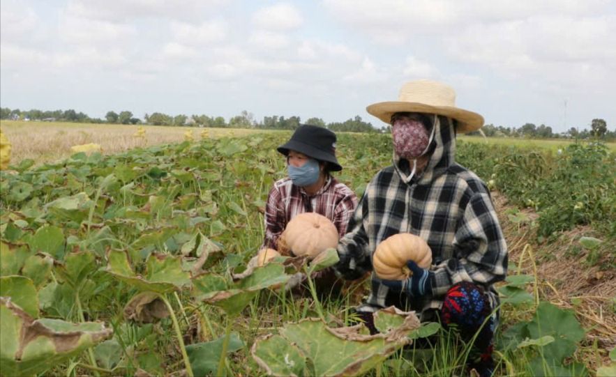 Nông dân xã Khánh Bình (tỉnh Cà Mau) thu hoạch bí đỏ