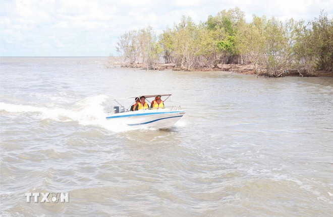 Nhằm tránh tình trạng tàu cá lợi dụng đặc điểm sông ngòi chằng chịt để tự ý ra biển hoạt động, ngành chức năng đã thường xuyên bố trí lực lượng kiểm tra, kiểm soát tàu cá ra ở những khu vực này. (Ảnh: Huỳnh Anh/TTXVN)