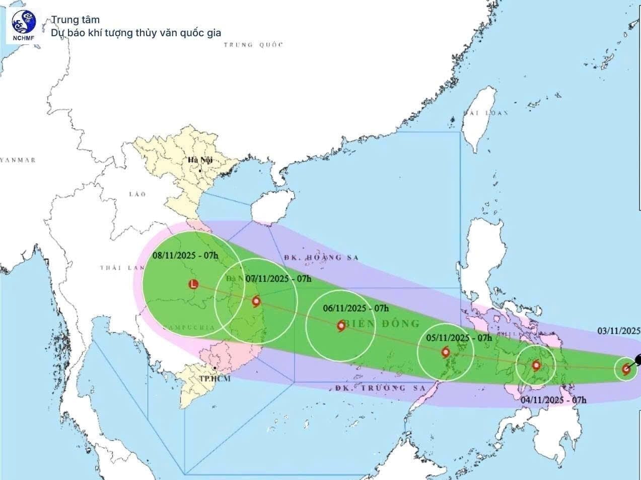 Theo bản tin khí tượng, hồi 07 giờ ngày 03/11, vị trí tâm bão ở vào khoảng 10,7 độ Vĩ Bắc; 129,0 độ Kinh Đông, trên vùng biển phía Đông miền Trung Philippin. Sức gió mạnh nhất vùng gần tâm bão mạnh cấp 11 (89-102km/giờ), giật cấp 15, di chuyển theo hướng Tây Tây Nam với tốc độ nhanh khoảng 25km/h.
