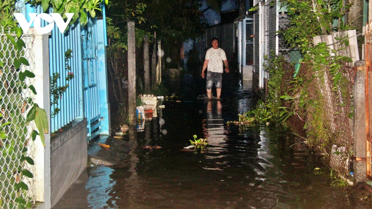 Do ảnh hưởng của mưa lớn kết hợp với triều cường, mực nước tại các sông, kênh, rạch trong tỉnh dâng cao, gây ngập nhiều nơi.