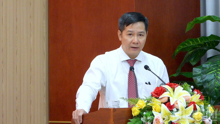 Phó Trưởng Ban Tổ chức Trung ương Nguyễn Thành Tâm phát biểu giao nhiệm vụ đối với đồng chí Lữ Quang Ngời và tập thể Ban Chấp hành Đảng bộ tỉnh Cà Mau.