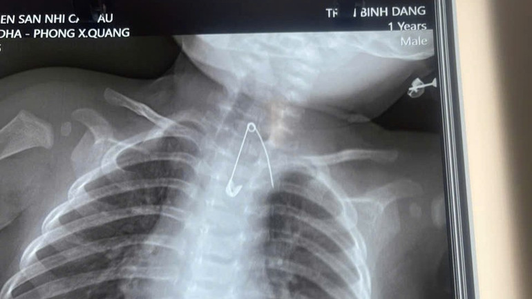 Trường hợp thứ hai là bé trai Đ. (7 tháng tuổi, ngụ xã An Trạch, tỉnh Cà Mau), nhập viện với triệu chứng sốt, ho và khò khè kéo dài. Người nhà cho biết bé thường xuyên bị viêm đường hô hấp trong suốt 3 tháng qua. Đáng chú ý, gia đình có thói quen dùng kim tây ghim “bùa bình an” vào áo của trẻ.