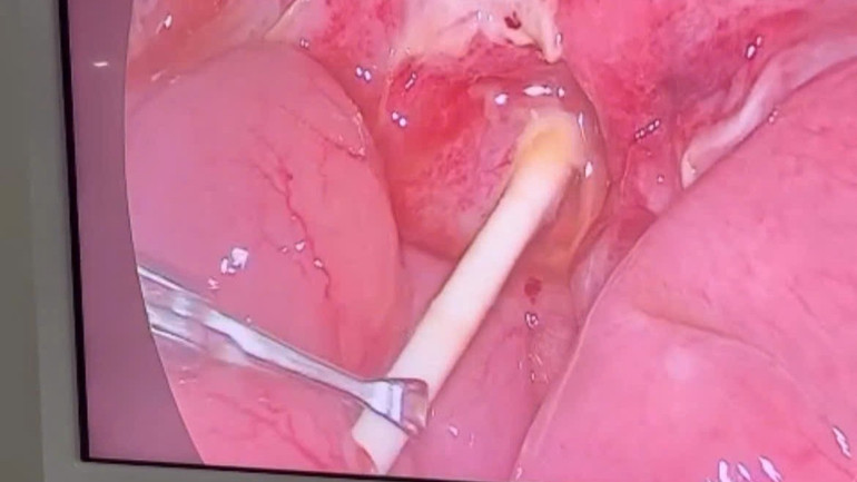 Sau khi thăm khám và thực hiện các xét nghiệm, các bác sĩ chẩn đoán bé bị viêm phúc mạc nặng và chỉ định phẫu thuật khẩn cấp. Quá trình nội soi, ê-kíp bác sĩ bàng hoàng phát hiện nhiều dịch mủ lan tỏa khắp ổ bụng.