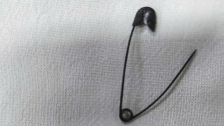 Chiếc kim tây nguy hiểm được phẫu thuật lấy ra từ cơ thể bé trai Đ. (7 tháng tuổi, ngụ xã An Trạch, tỉnh Cà Mau).(Ảnh do bệnh viện cung cấp)