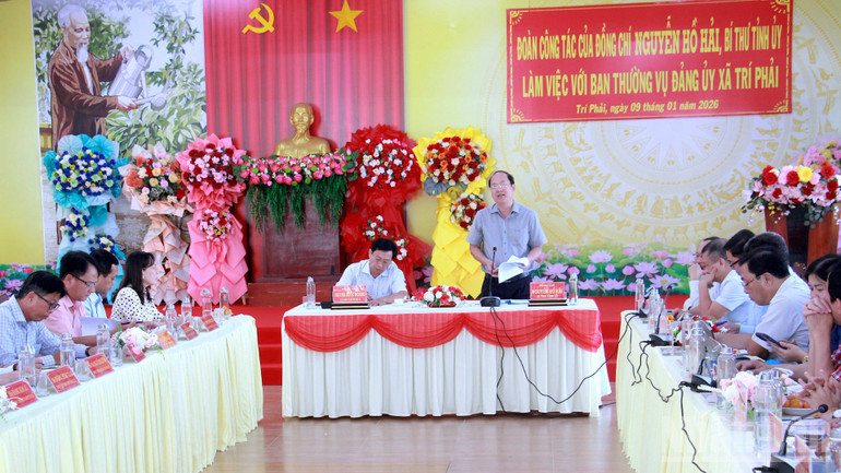 Phát biểu tại buổi làm việc, Bí thư Tỉnh ủy Cà Mau Nguyễn Hồ Hải ghi nhận và biểu dương nỗ lực của Đảng bộ, chính quyền xã Trí Phải trong việc nhanh chóng ổn định bộ máy, vận hành hệ thống hiệu lực, hiệu quả.