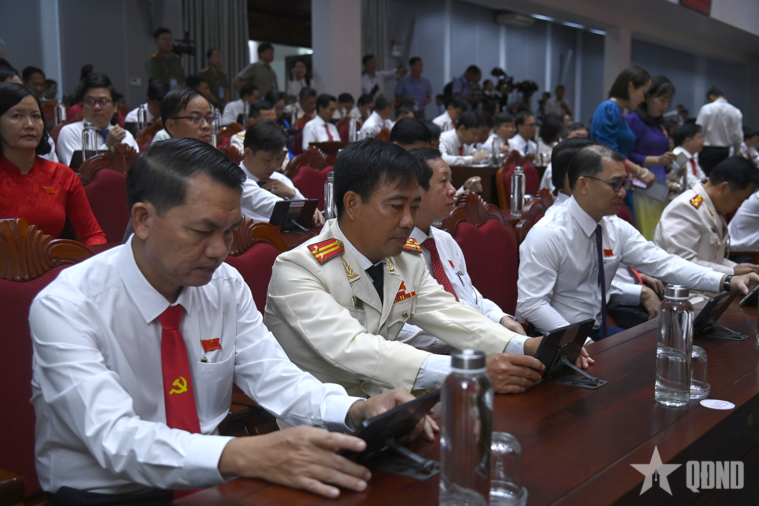 Các đại biểu sử dụng máy tính bảng để truy cập tài liệu phục vụ Đại hội.
