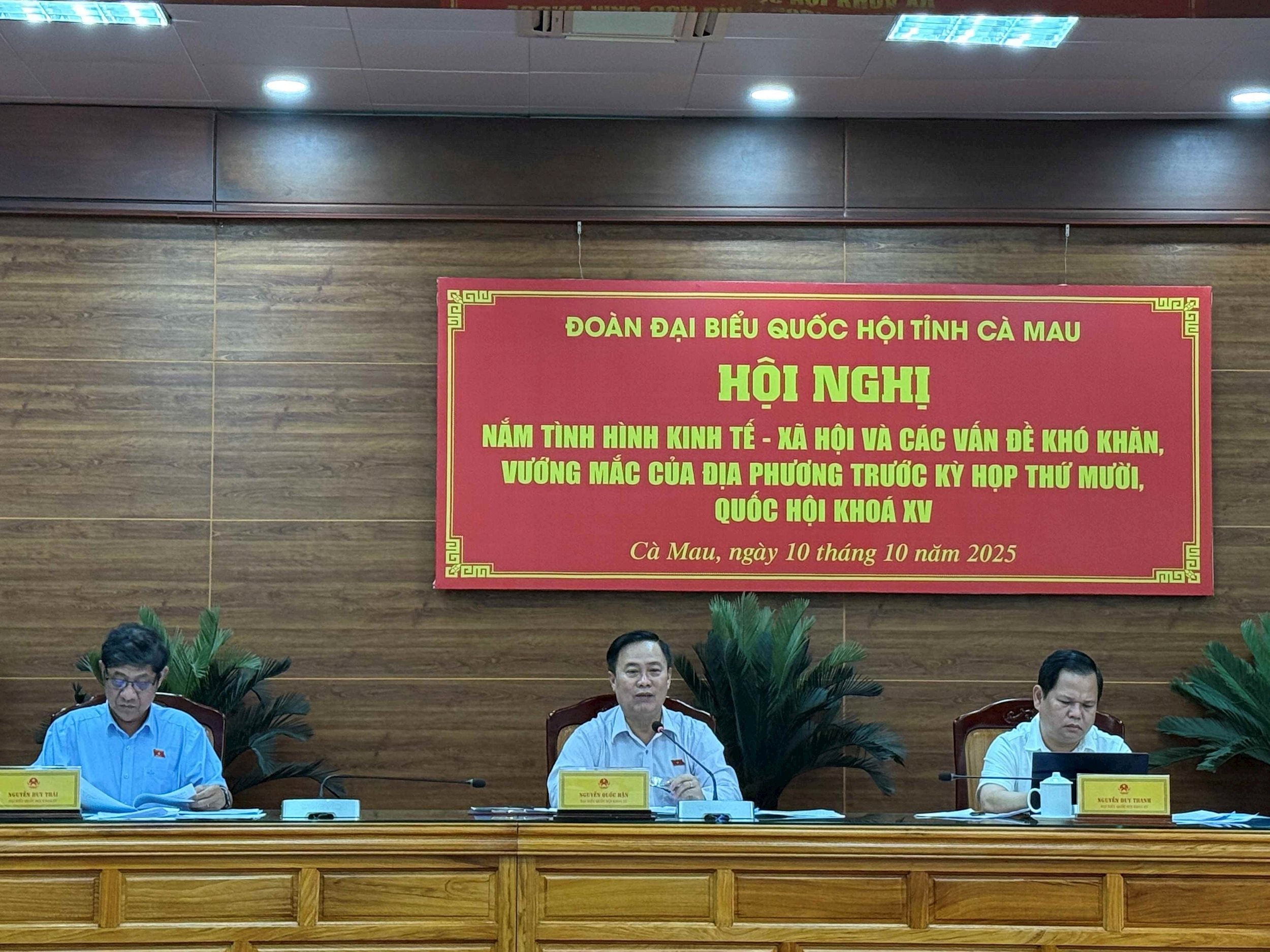Thay mặt Đoàn tiếp thu toàn bộ các ý kiến, kiến nghị, Phó Trưởng đoàn chuyên trách Đoàn ĐBQH Nguyễn Quốc Hận nhấn mạnh, những ý kiến kiến nghị tại hội nghị sẽ là nguồn tư liệu quan trọng, góp phần giúp Đoàn ĐBQH tỉnh Cà Mau chuẩn bị chu đáo, tham gia sâu sát và hiệu quả tại Kỳ họp thứ Mười, Quốc hội Khóa XV, nhất là trong công tác kiến nghị, đề xuất chính sách tháo gỡ khó khăn, thúc đẩy phát triển kinh tế - xã hội địa phương.