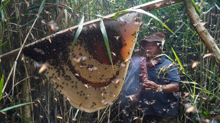 Tuy nhiên, trải nghiệm được mong chờ nhất vẫn là tận mắt chứng kiến quy trình lấy mật ong rừng. Theo quan niệm của nhiều du khách, chuyến đi đến Cà Mau sẽ chưa trọn vẹn nếu thiếu đi khoảnh khắc được nếm thử vị ngọt lịm của bắp mật vừa mới hạ xuống từ cành tràm.