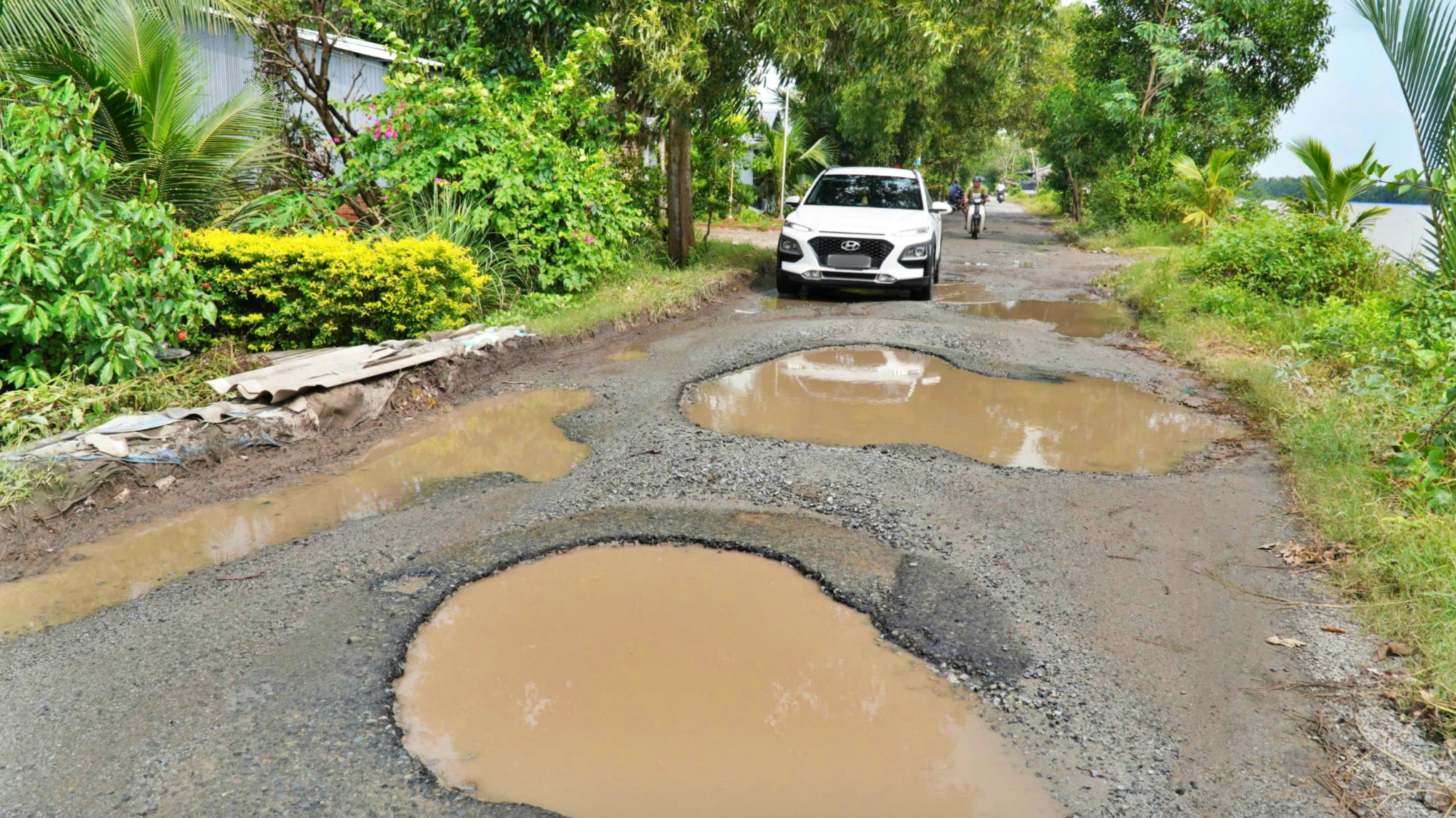 Thực trạng tuyến đường này hư hỏng, xuống cấp xuất hiện tháng 7/2025, vừa qua liên tiếp xuất hiện mưa lớn, triều cường dâng, nhiều đoạn tuyến đường bị ngập, nước rút chậm ứ đọng nhiều ngày khiến cho mặt đường vốn đã hư hỏng nay càng nặng thêm.