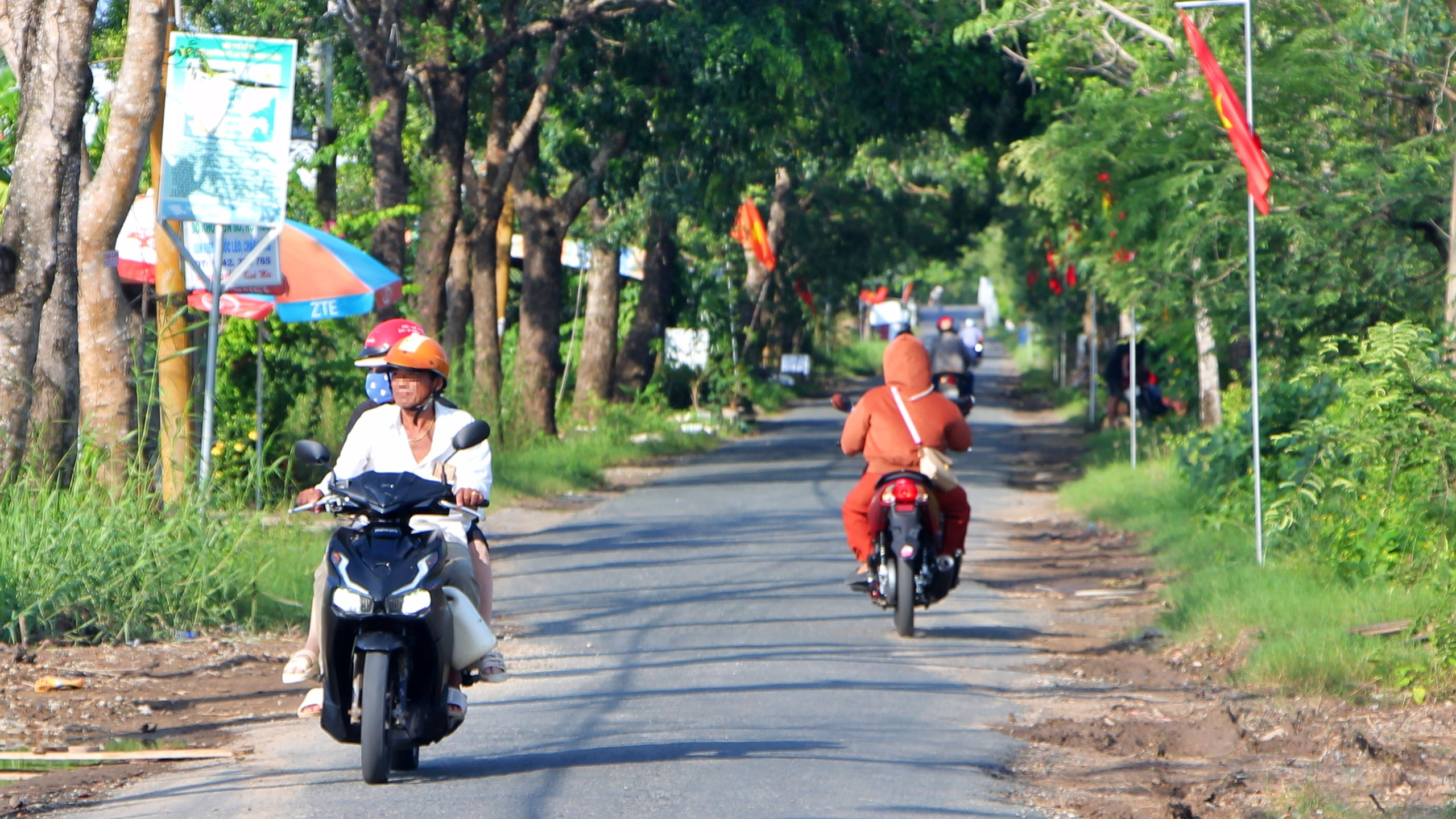 Phần đường có tổng chiều dài 13.980m; đường thiết kế cấp VI đồng bằng; vận tốc thiết kế 30km/h; tải trọng thiết kế trục 10 tấn; chiều rộng phần mặt đường 4,5m; gia cố ta luy nền đường bằng cây gỗ địa phương kết hợp đắp đất tại những vị trí bờ kênh, ao, vuông có nguy cơ sạt lở, các vị trí giao cắt với đường dân sinh hiện hữu được vuốt nối, cải tạo mặt đường tại nút giao.