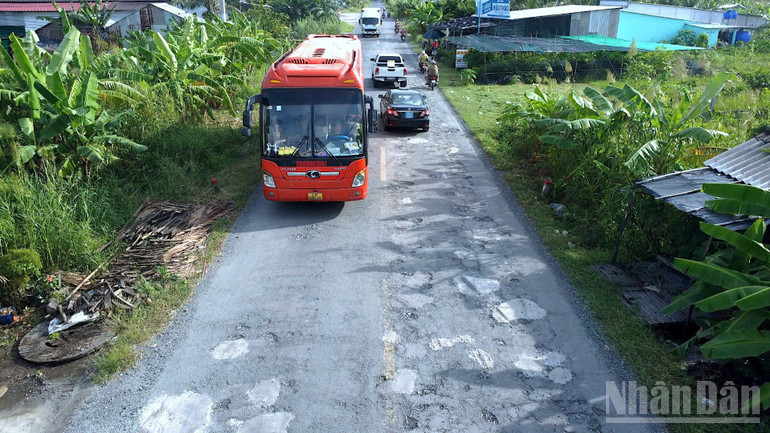 Quốc lộ 1A đoạn qua tỉnh Cà Mau chi chít “tì vết” vừa được "vá tạm thời" để phương tiện lưu thông an toàn.