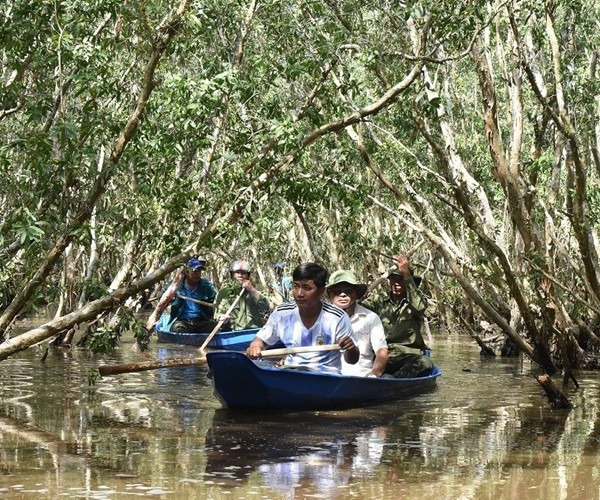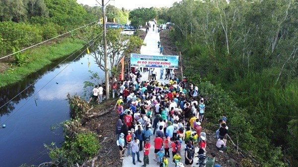 Người dân địa phương và du khách tham gia đi bộ xuyên rừng tại Vườn Quốc gia U Minh Hạ.
