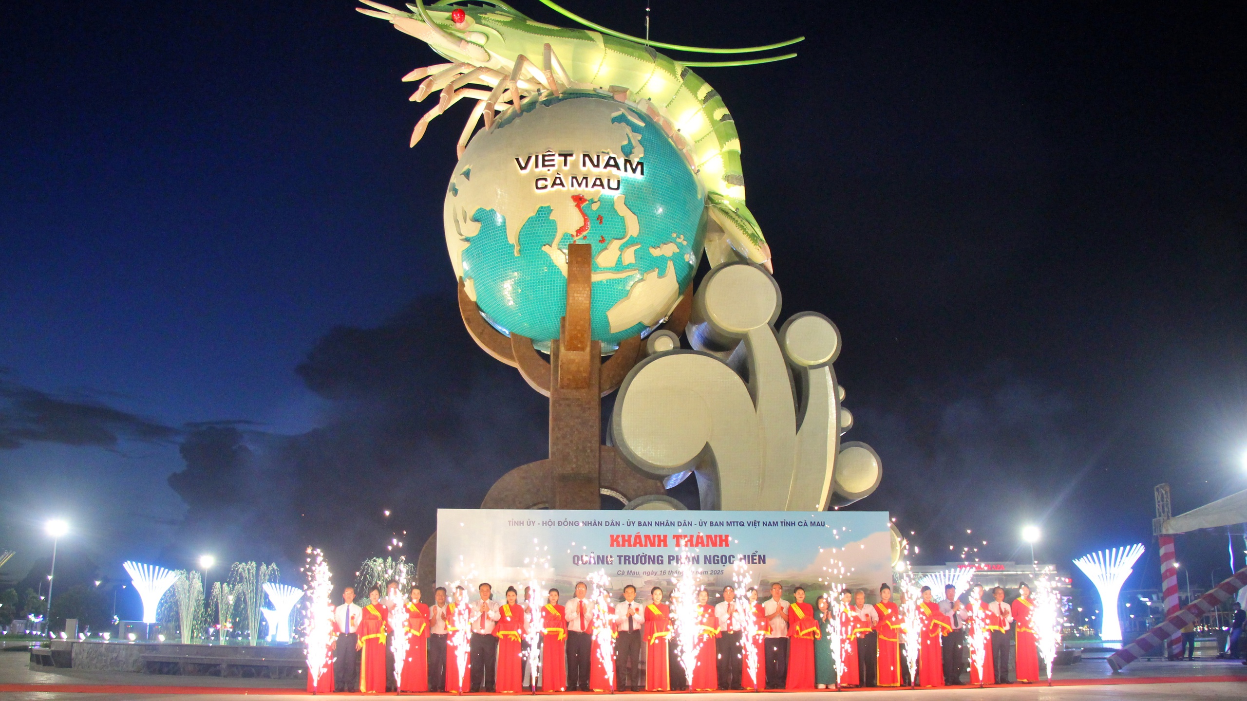 Đại biểu cắt băng khánh thành quảng trường Phan Ngọc Hiển chiều tối 16/10.