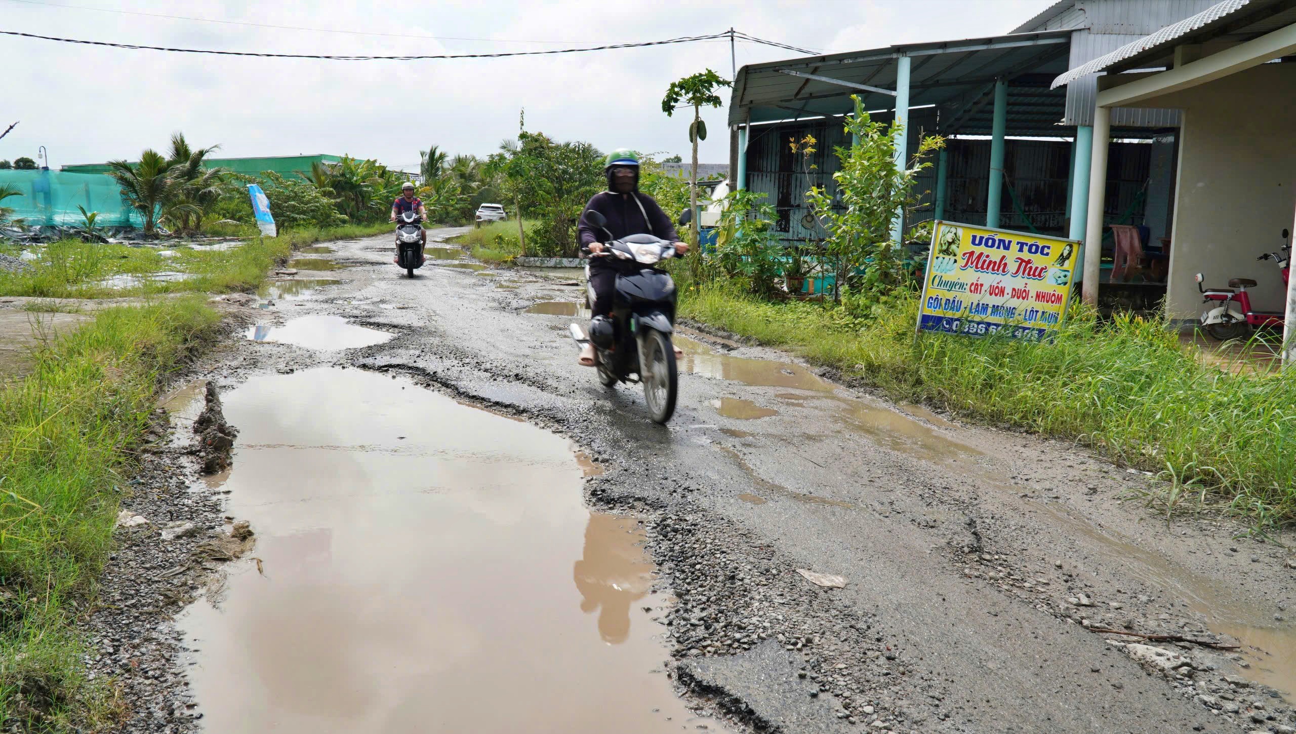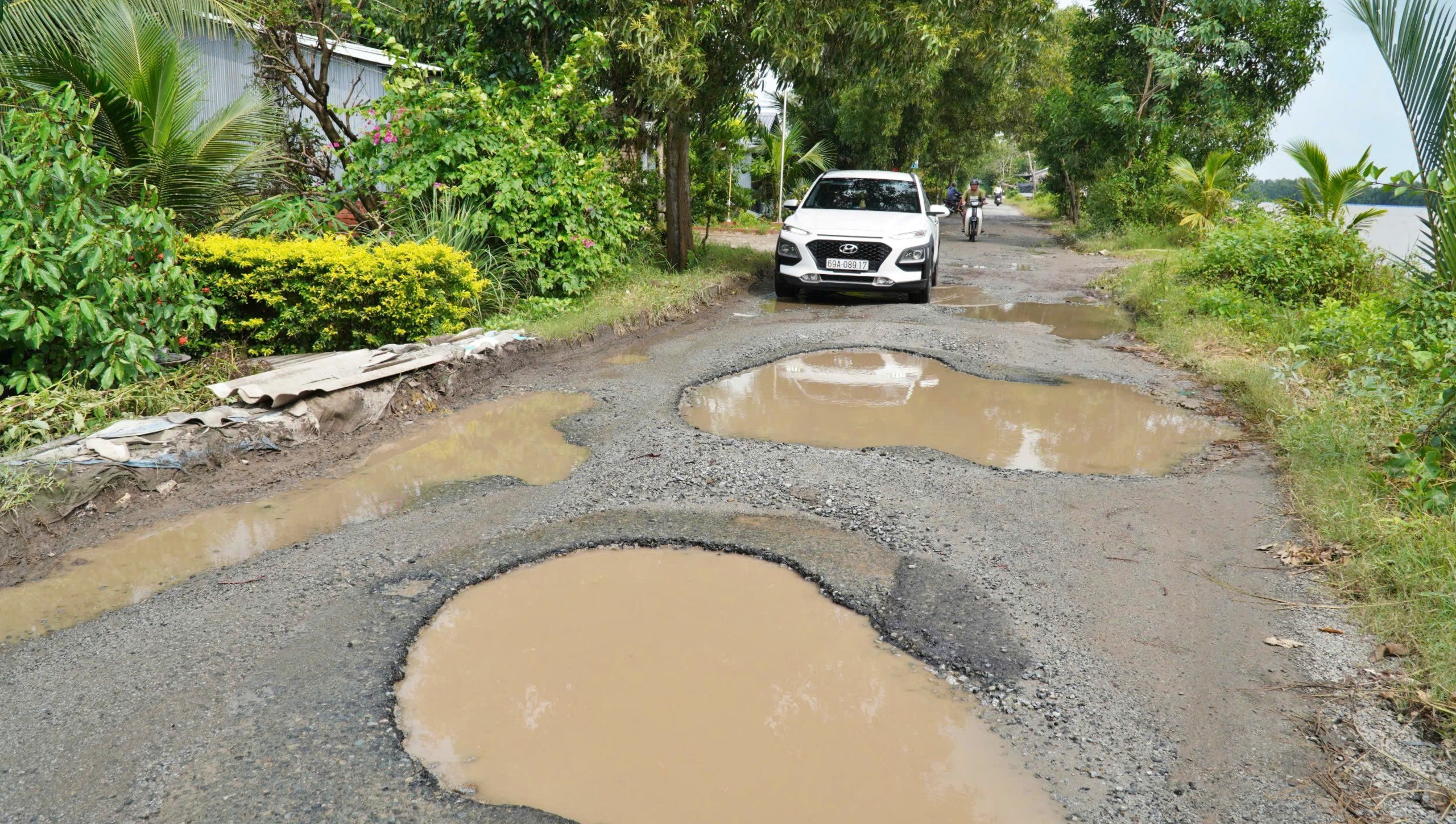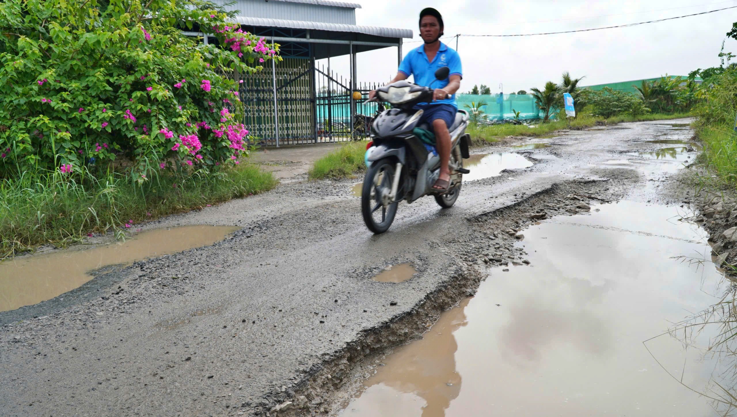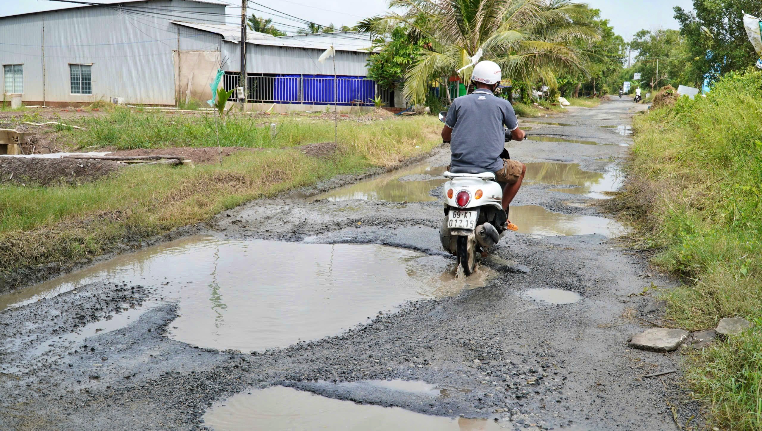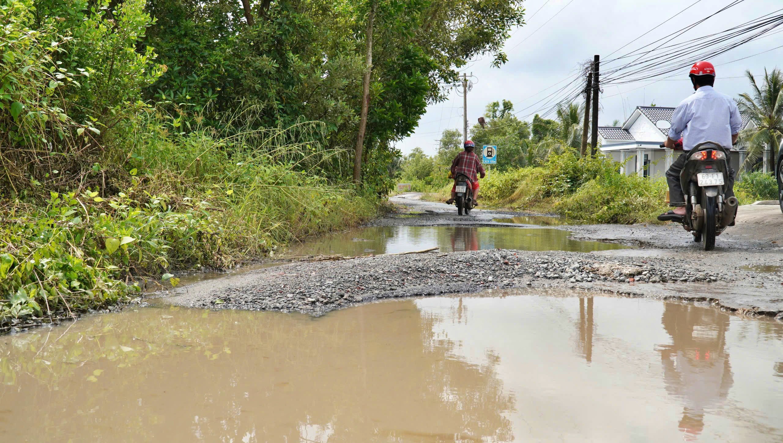 Theo ghi nhận của PV, trên tuyến đường này mặt đường xuất hiện nhiều ổ gà, ổ voi, nước đọng thành vũng lớn, học sinh đi lại rất nguy hiểm, ban ngày các phương tiện buộc phải chạy chậm để tránh ổ gà. Ban đêm, trời mưa lớn không có đèn chiếu sáng rất dễ bị té ngã vì sụp hố sâu đầy nước.