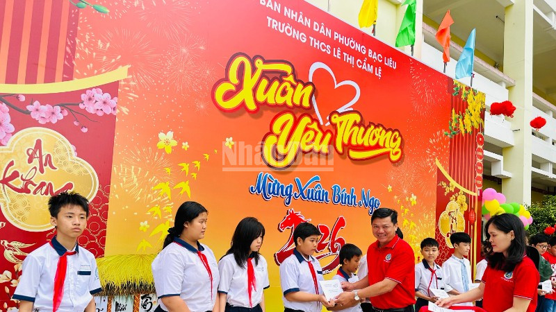 Tại Trường Tiểu học Kim Đồng (phường Bạc Liêu, tỉnh Cà Mau), thầy giáo Trần Văn Sơn, Bí thư Chi bộ, Hiệu trưởng nhà trường cho biết, nhân dịp đón mừng Xuân Bính Ngọ 2026, Chi bộ và Ban Giám hiệu của trường đã vận động được 280 bộ quần áo trao tặng các em học sinh hoàn cảnh khó khăn, tổng trị giá trên 42 triệu đồng.