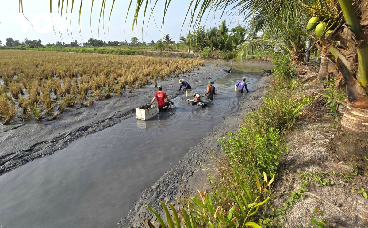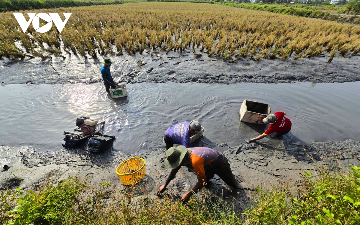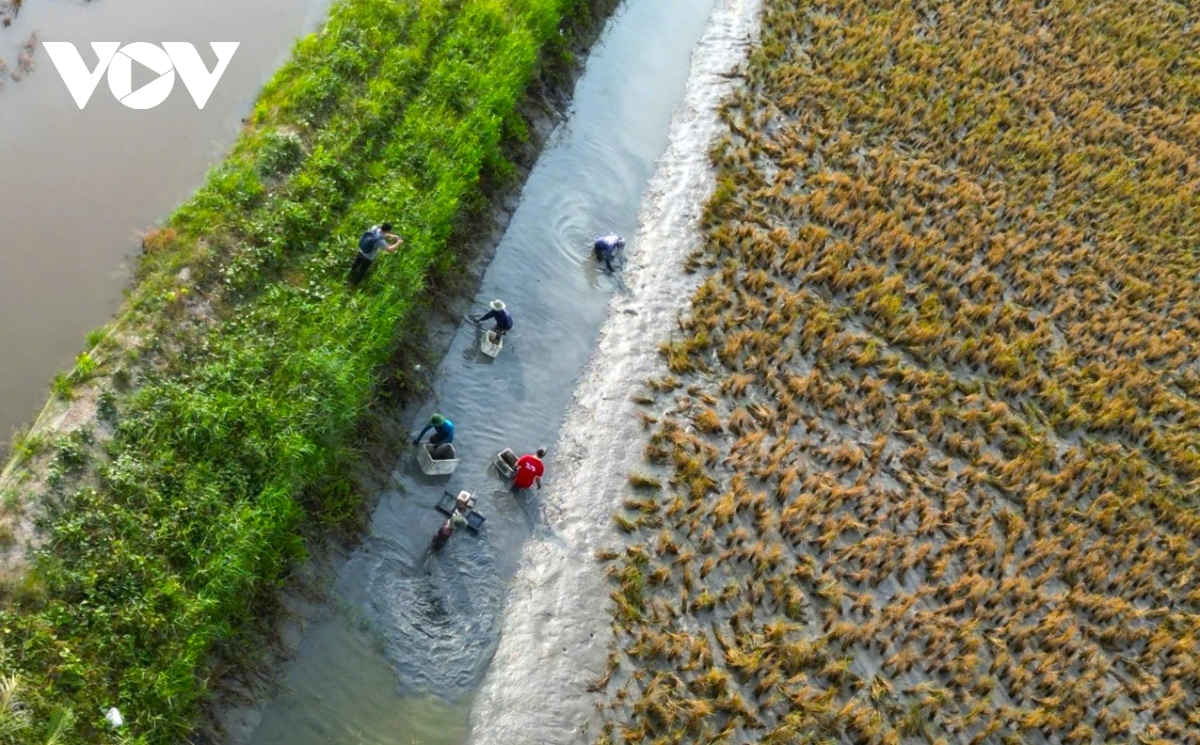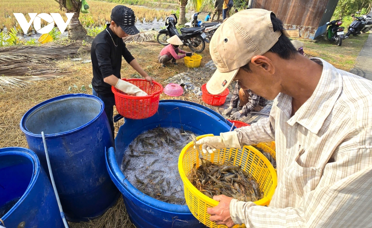 Sau khi thu hoạch vụ lúa sẽ đến thời điểm thu hoạch tôm càng nhưng tôm không đều họ có thể thu tỉa và nếu còn quá nhỏ có thể kéo dài vụ nuôi qua Tết Nguyên đán.