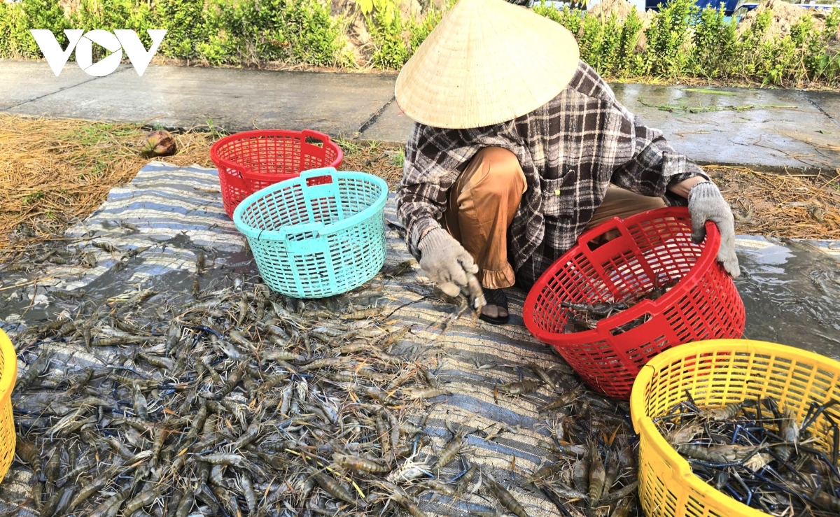 Tại xã Biển Bạch - một trong những địa phương có diện tích canh tác lúa - tôm lớn của tỉnh Cà Mau, người dân đang bước vào chính vụ thu hoạch tôm càng.