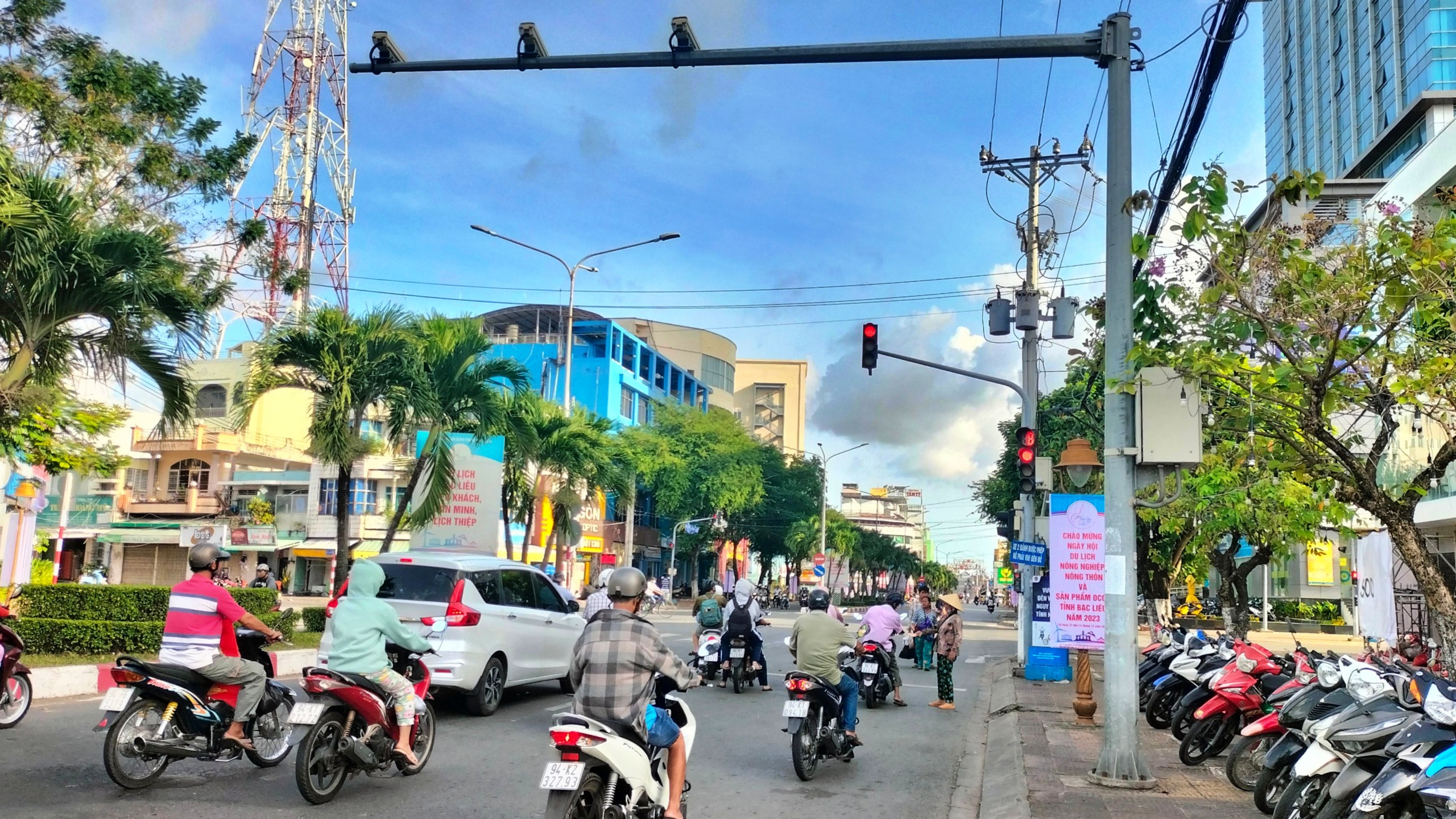 Hệ thống camera giám sát giao thông được lắp đặt trên đường Trần Phú tại khu vực nút giao Trần Phú - Bà Triệu (thuộc phường Bạc Liêu, tỉnh Cà Mau).