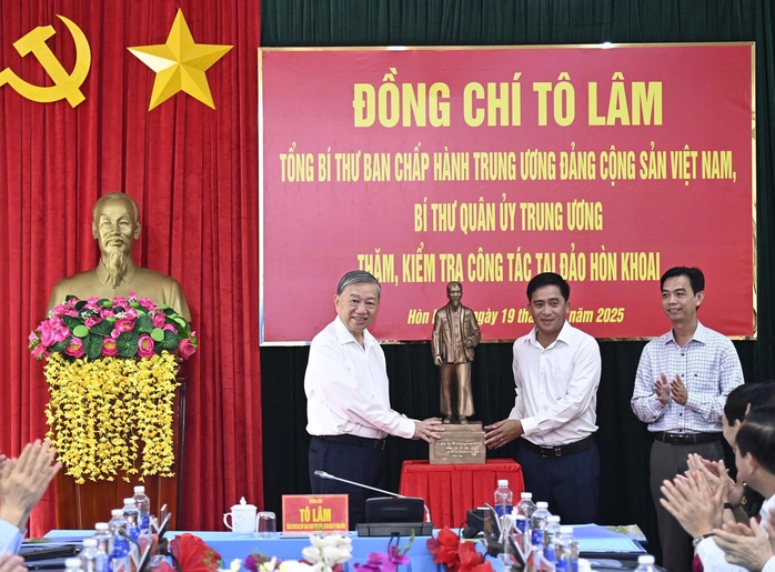 Sáng 19-11, Tổng Bí thư Tô Lâm và đoàn công tác Trung ương đã đến thăm và làm việc với các đơn vị Quân đội và Đảng bộ, chính quyền tỉnh Cà Mau tại đảo Hòn Khoai (xã Đất Mũi, tỉnh Cà Mau).