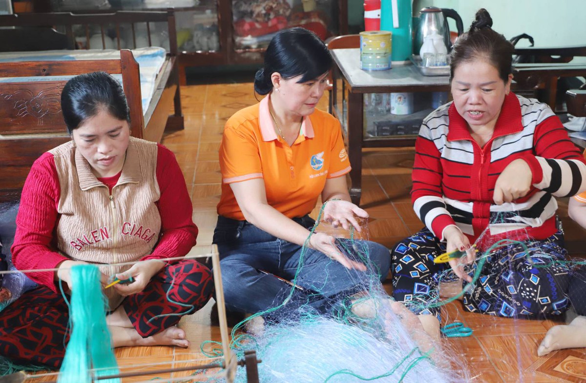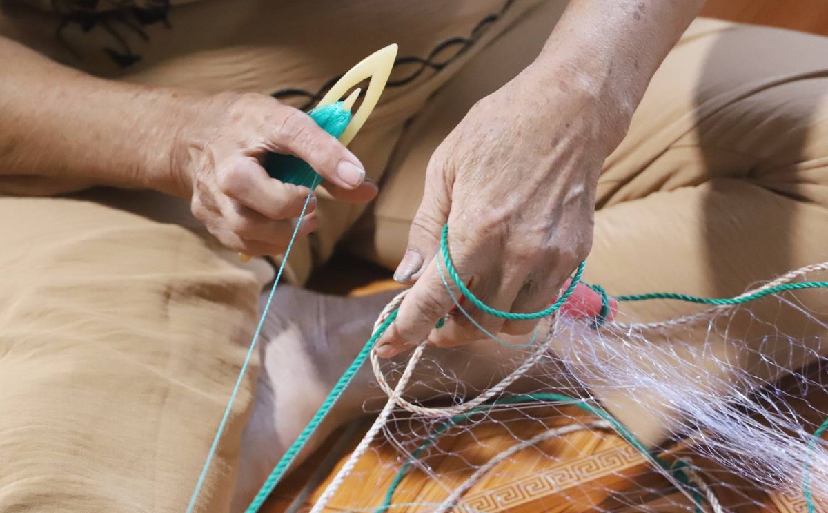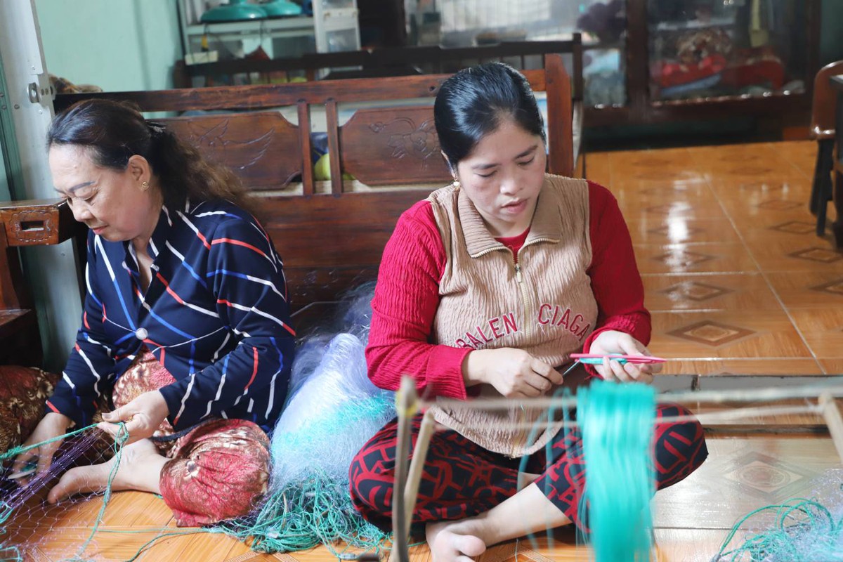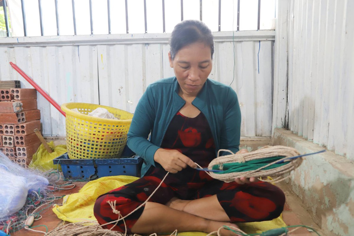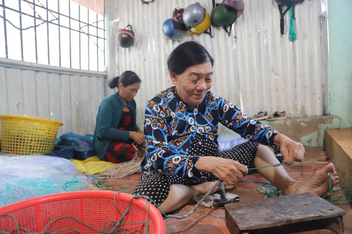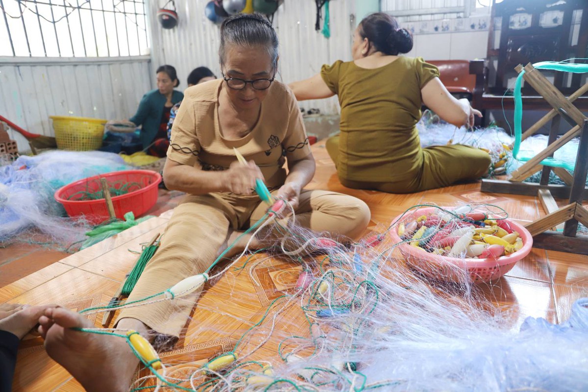 Nghề vá lưới mang lại thu nhập cho nhiều phụ nữ lớn tuổi tại xã Cái Đôi Vàm, Cà Mau