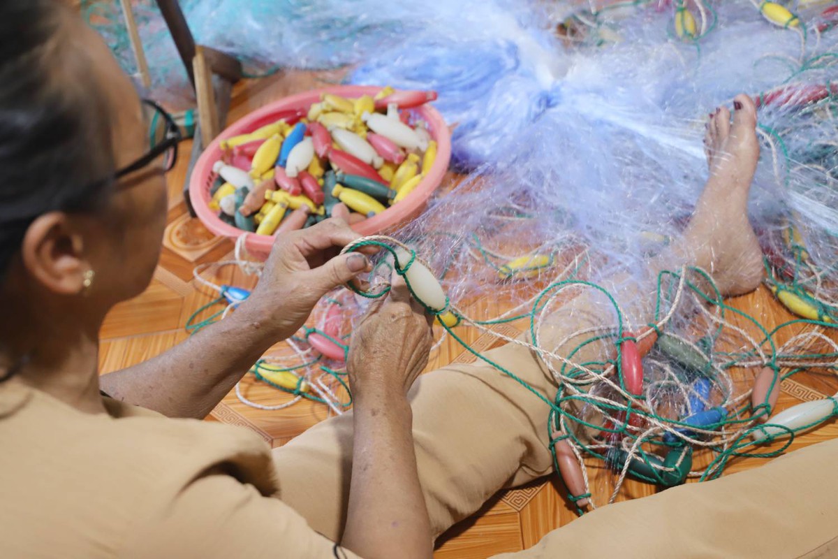 Tùy vào khả năng, mỗi người sẽ làm một công đoạn khác nhau, người đan, người ráp phao, người dập chì...