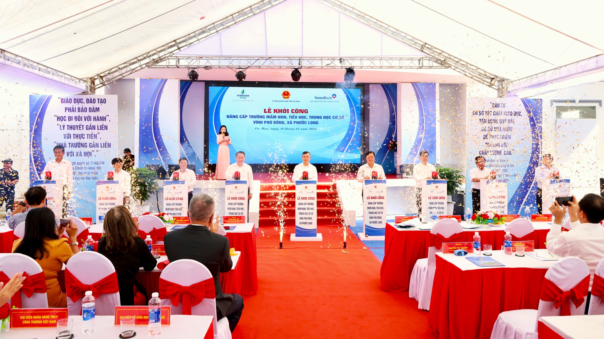 Ngày 10/1, UBND tỉnh Cà Mau tổ chức lễ khởi công nâng cấp các trường Mầm non, Tiểu học, THCS Vĩnh Phú Đông (xã Phước Long, tỉnh Cà Mau).