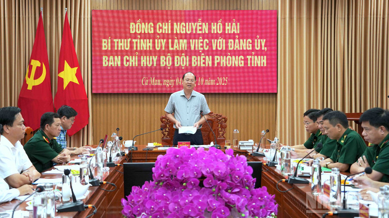 Tại buổi làm việc, Bí thư Tỉnh ủy Cà Mau Nguyễn Hồ Hải đánh giá cao những kết quả mà Bộ đội Biên phòng Cà Mau đã đạt được trong thời gian qua. Đồng chí nhấn mạnh, Cà Mau có lợi thế đặc thù với cả Biển Đông và biển Tây. Đây vừa là tiềm năng kinh tế lớn, vừa là thách thức trong bảo vệ chủ quyền và phát triển bền vững.