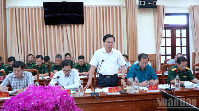 Giám đốc Sở Nông nghiệp và Môi trường Cà Mau Tô Hoài Phương (đứng),thông tin về công tác phối hợp với Bộ đội Biên phòng Cà Mau.