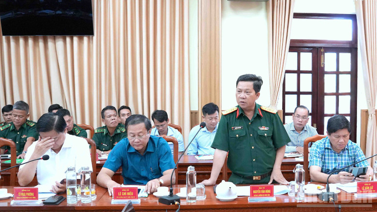 Báo cáo tại buổi làm việc, Đại tá Hà Văn Thanh, Chỉ huy trưởng Ban Chỉ huy Bộ đội Biên phòng Cà Mau cho biết, đơn vị hiện đang quản lý và bảo vệ bờ biển dài 310km, cùng vùng biển rộng lớn. Sau khi sáp nhập, đơn vị đã nhanh chóng ổn định tổ chức, tư tưởng, kiện toàn biên chế, thực hiện quy trình nhân sự và giải quyết chế độ chính sách cho cán bộ, quân nhân.