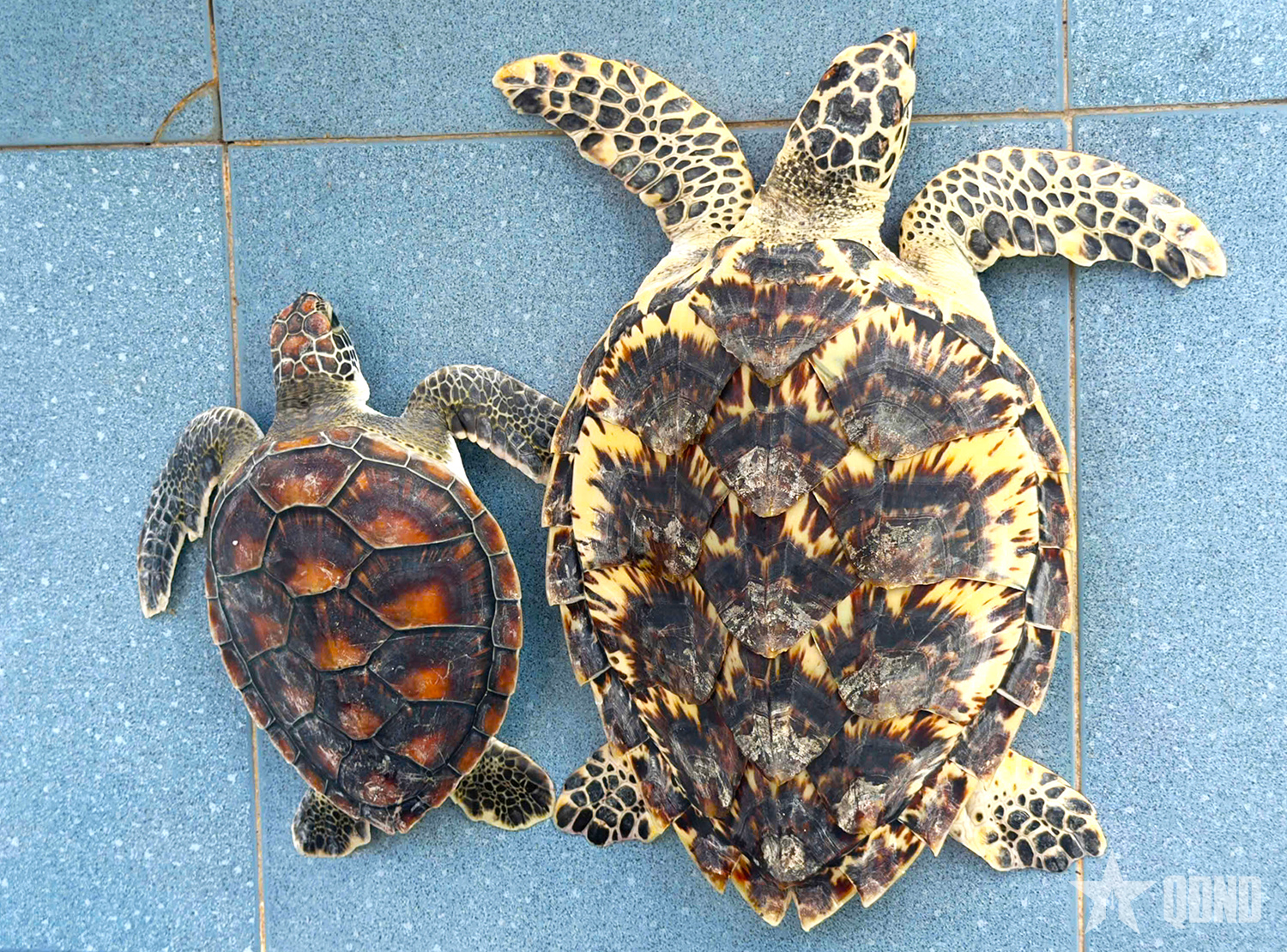Trước đó, vào khoảng 22 giờ ngày 17-4, trong lúc khai thác thủy sản trên biển, ông Trương Vũ Bảo (ngụ ấp Bảo Vĩ, xã Tân Ân) phát hiện hai cá thể rùa biển bị mắc vào lưới đánh bắt. Ông đã đưa về chăm sóc tạm thời và nhanh chóng thông báo cho lực lượng biên phòng để phối hợp xử lý.