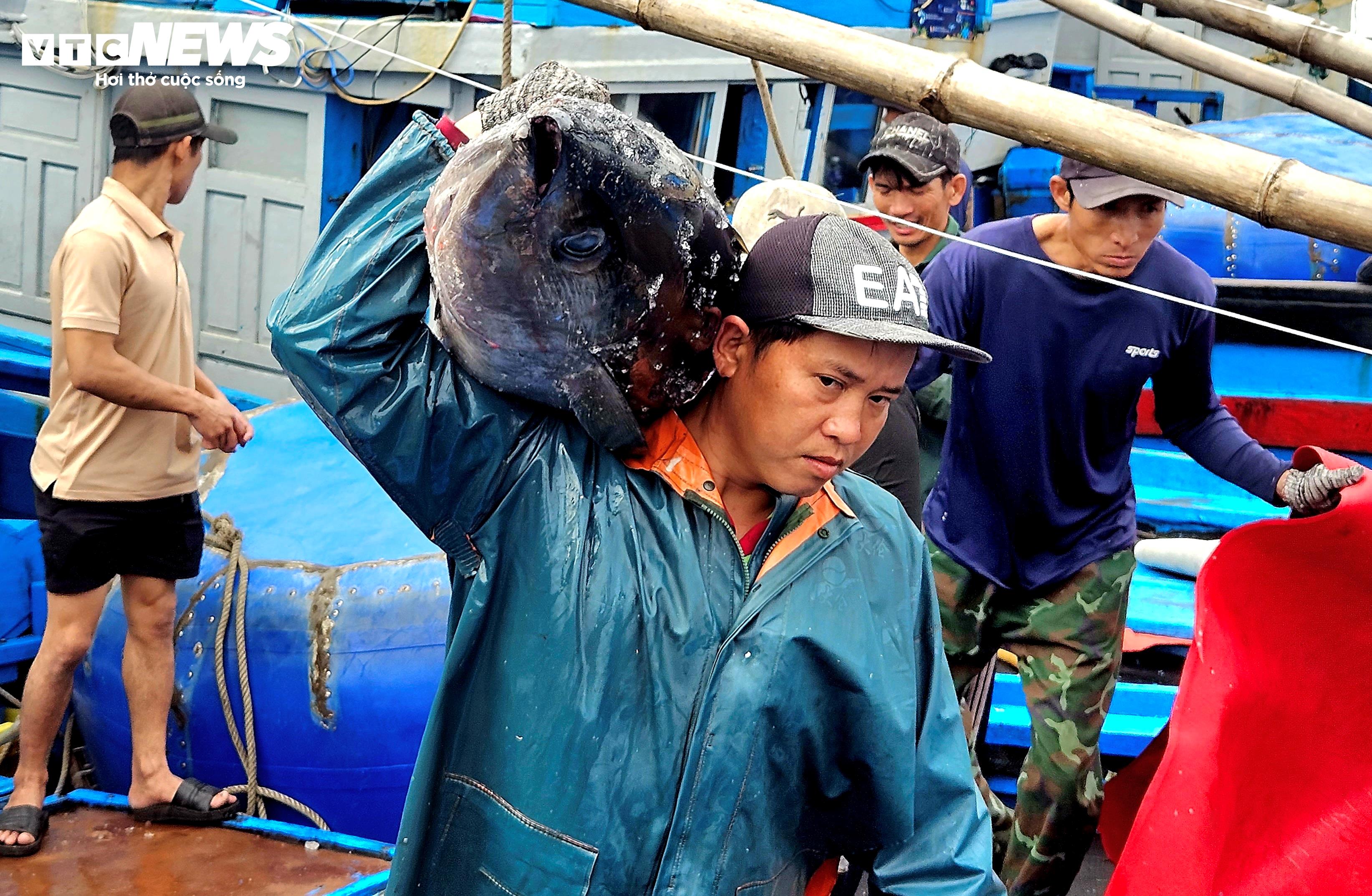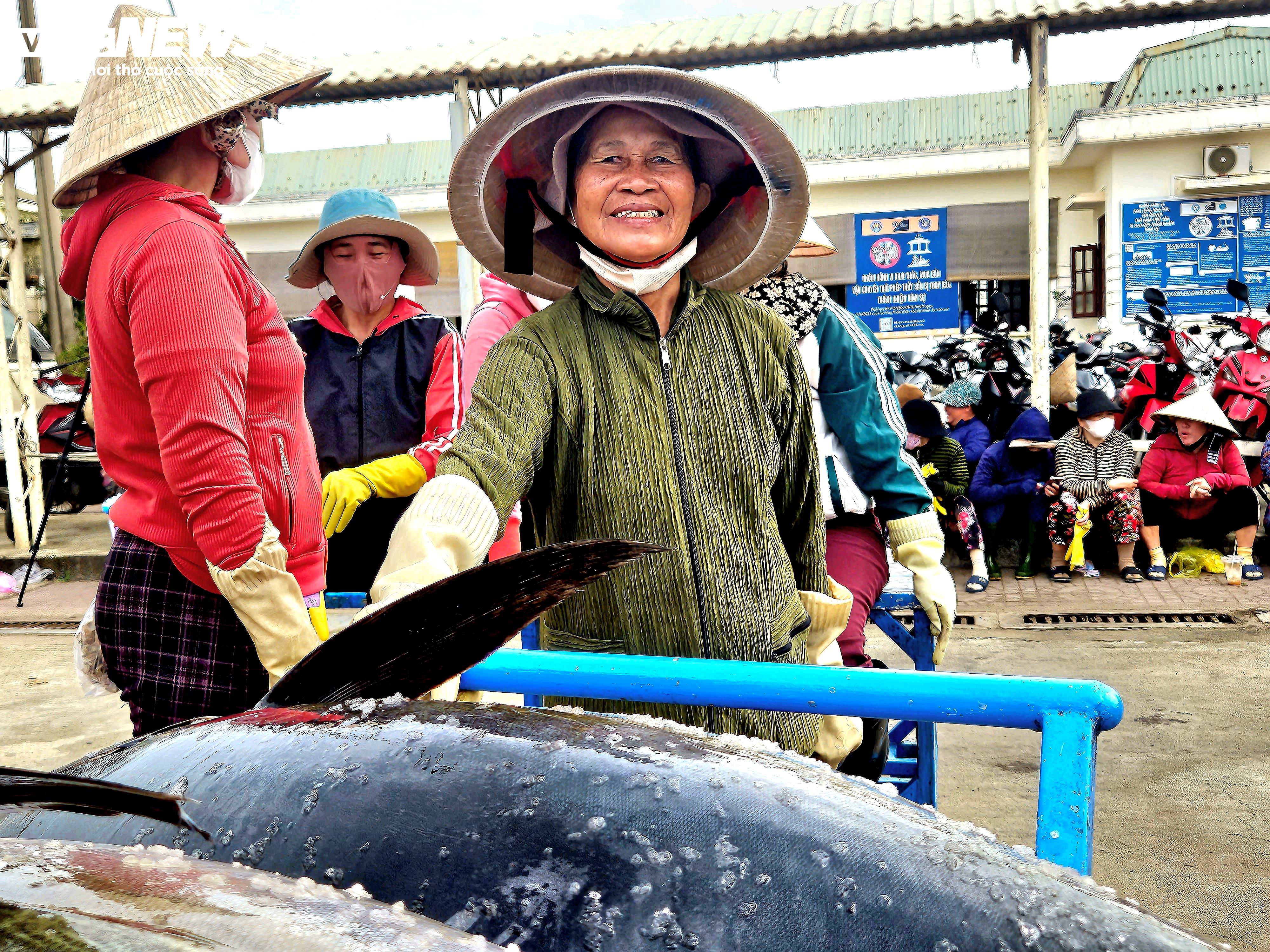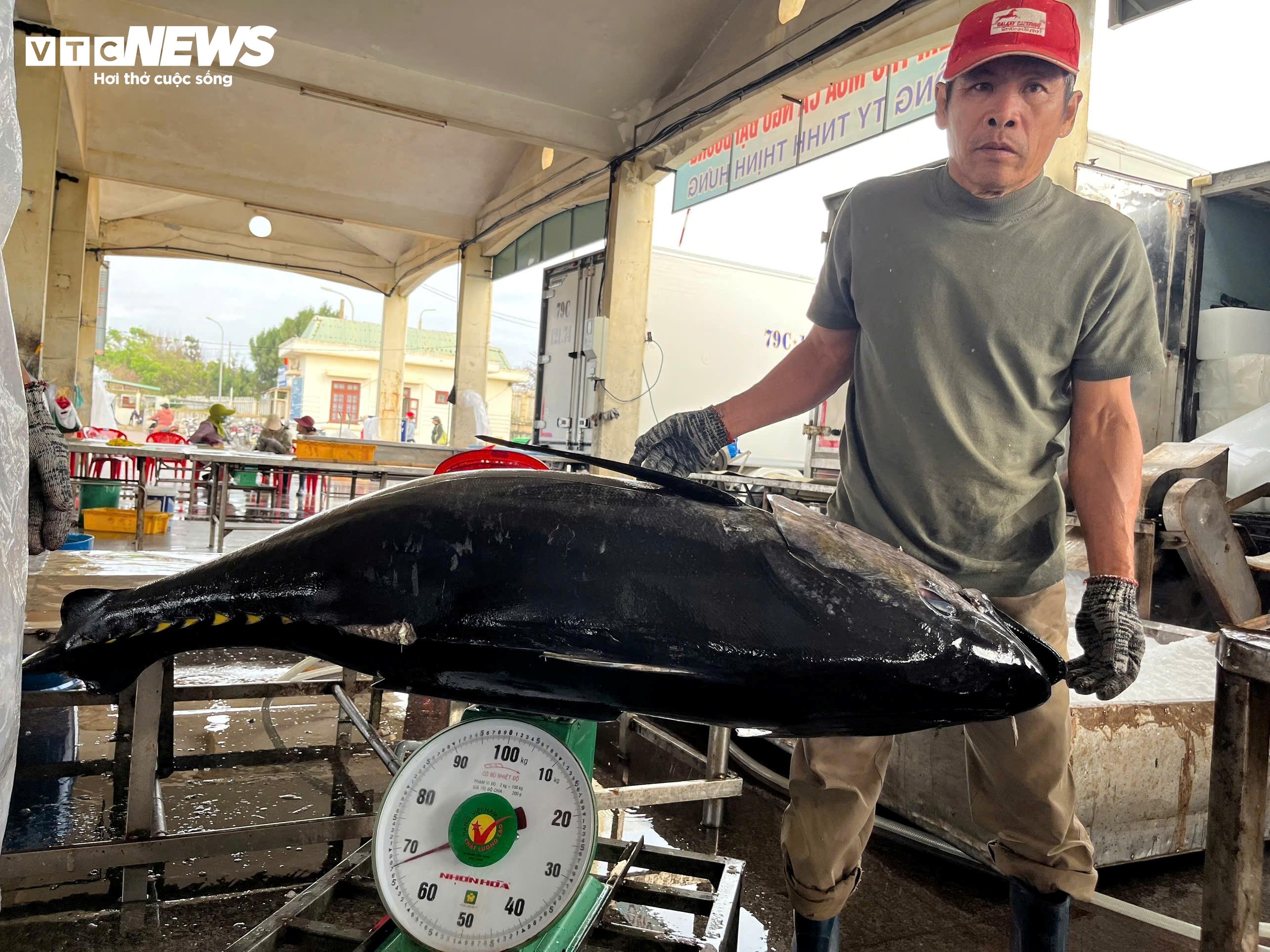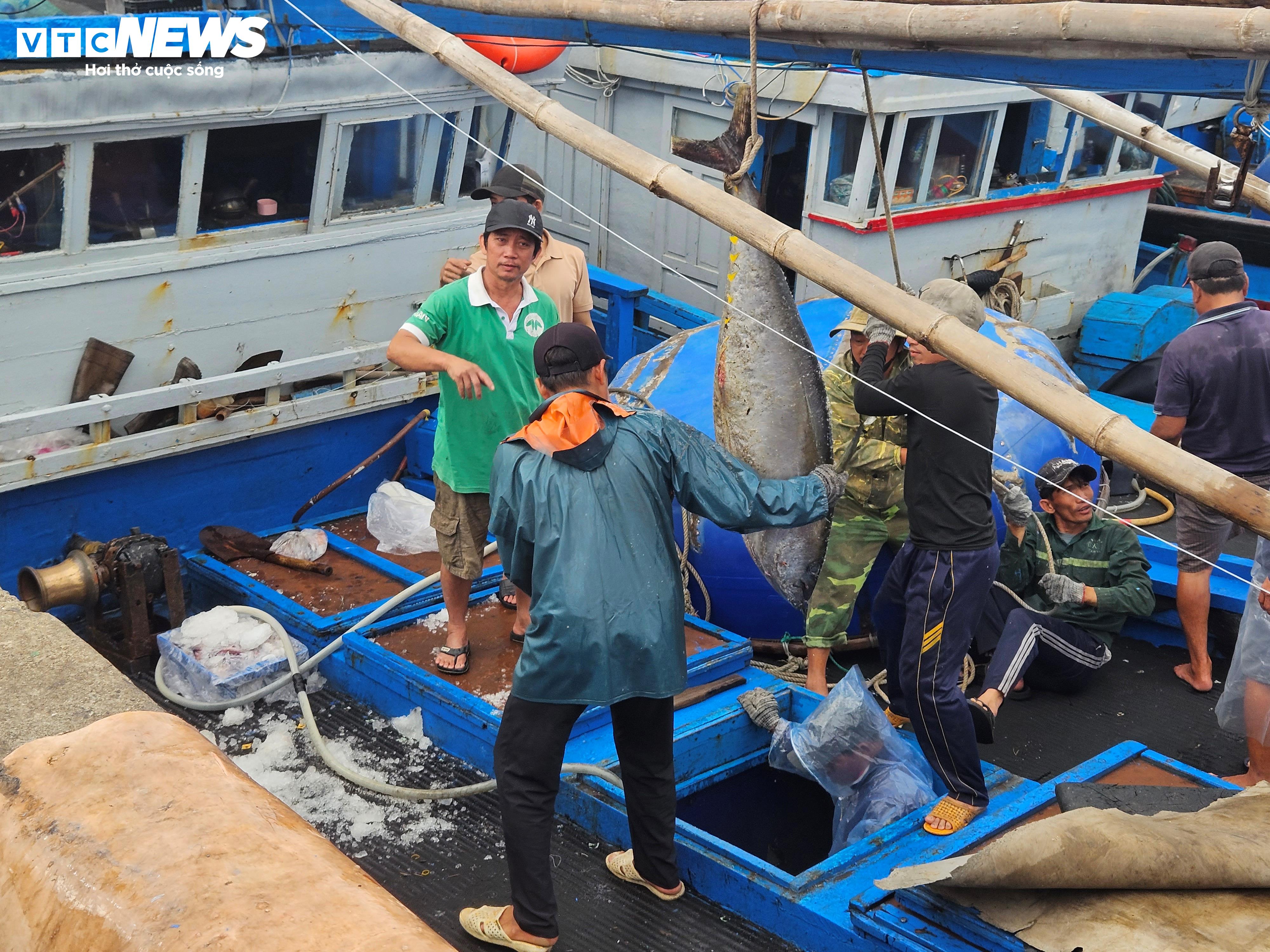 Cùng chung niềm vui, ngư dân Chế Văn Tất, thuyền trưởng tàu ĐK 96327 TS, chia sẻ rằng trong chuyến biển cuối năm, trung bình mỗi tàu đánh bắt được từ 40 đến 60 con cá ngừ đại dương, mang lại thu nhập khá.
