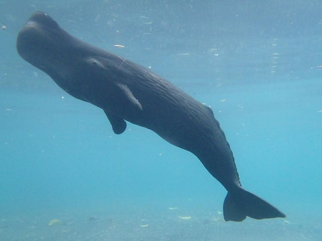 Các nhà khoa học đã gắn những chiếc micro nhỏ hình cốc hút gọi là DTAG vào 15 con cá nhà táng bơi ở vùng biển Caribe để ghi lại tiếng kêu của chúng ở cự ly gần mà không bị méo tiếng. Ảnh: national-aquarium.co.uk.