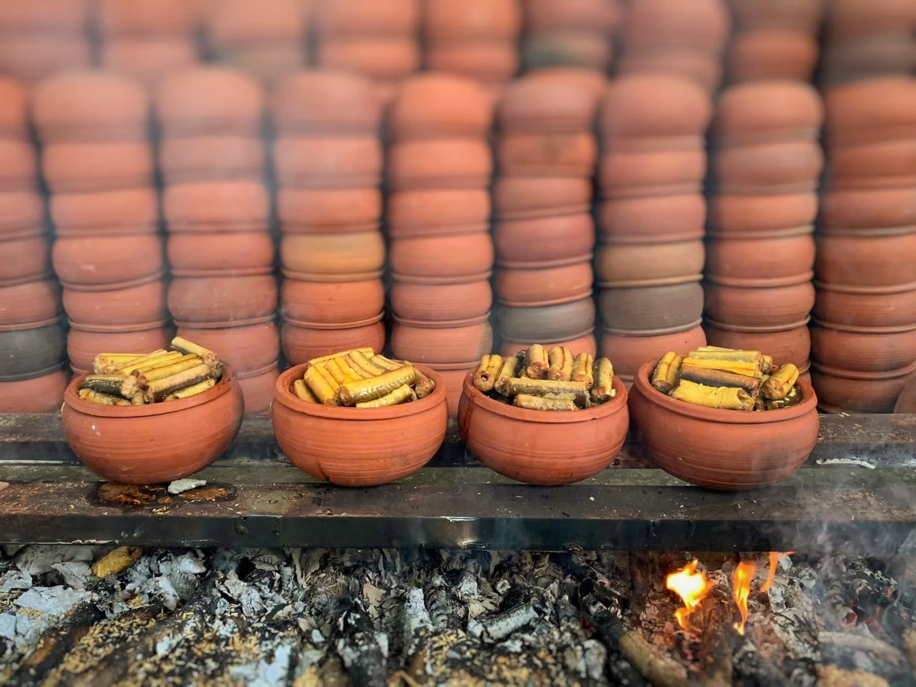 Nồi cá nhệch kho tộ được đun liên tục bằng củi và ủ than, đòi hỏi người kho luôn túc trực bên bếp