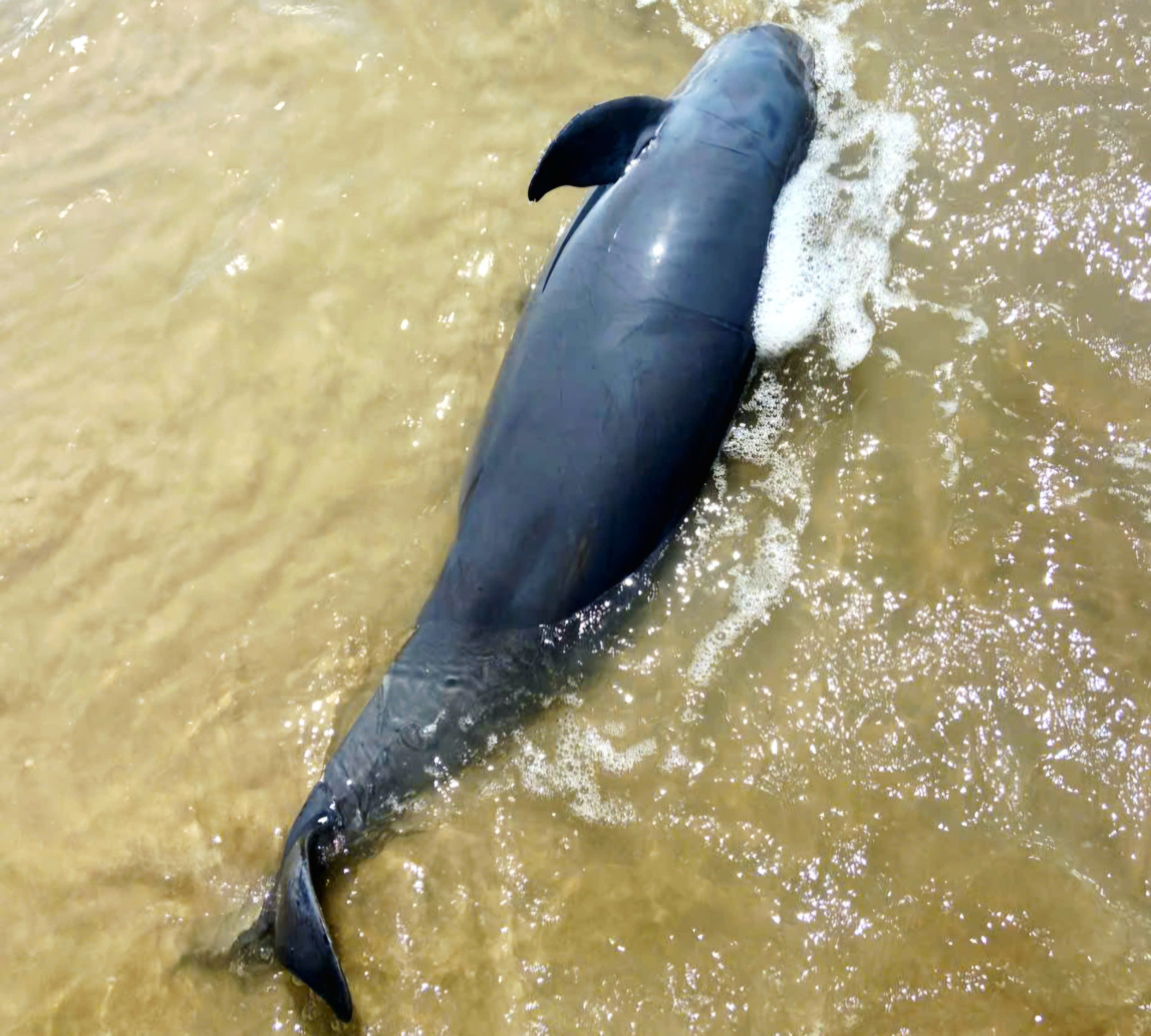 Mặc dù được lực lượng cứu hộ bờ biển tìm cách hỗ trợ nhưng do cá quá yếu nên đã chết sau đó