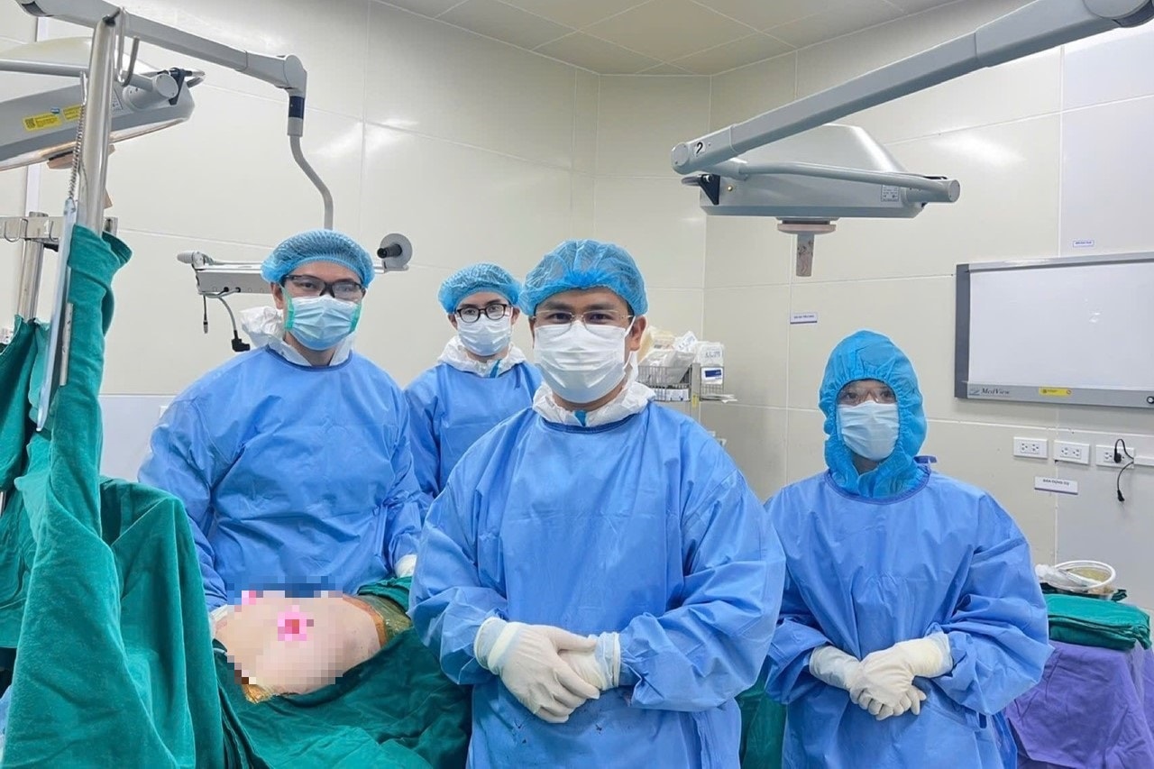 Các y bác sĩ Bệnh viện Đại học Y Hà Nội trong ca phẫu thuật cho bệnh nhân. Ảnh: Bác sĩ cung cấp