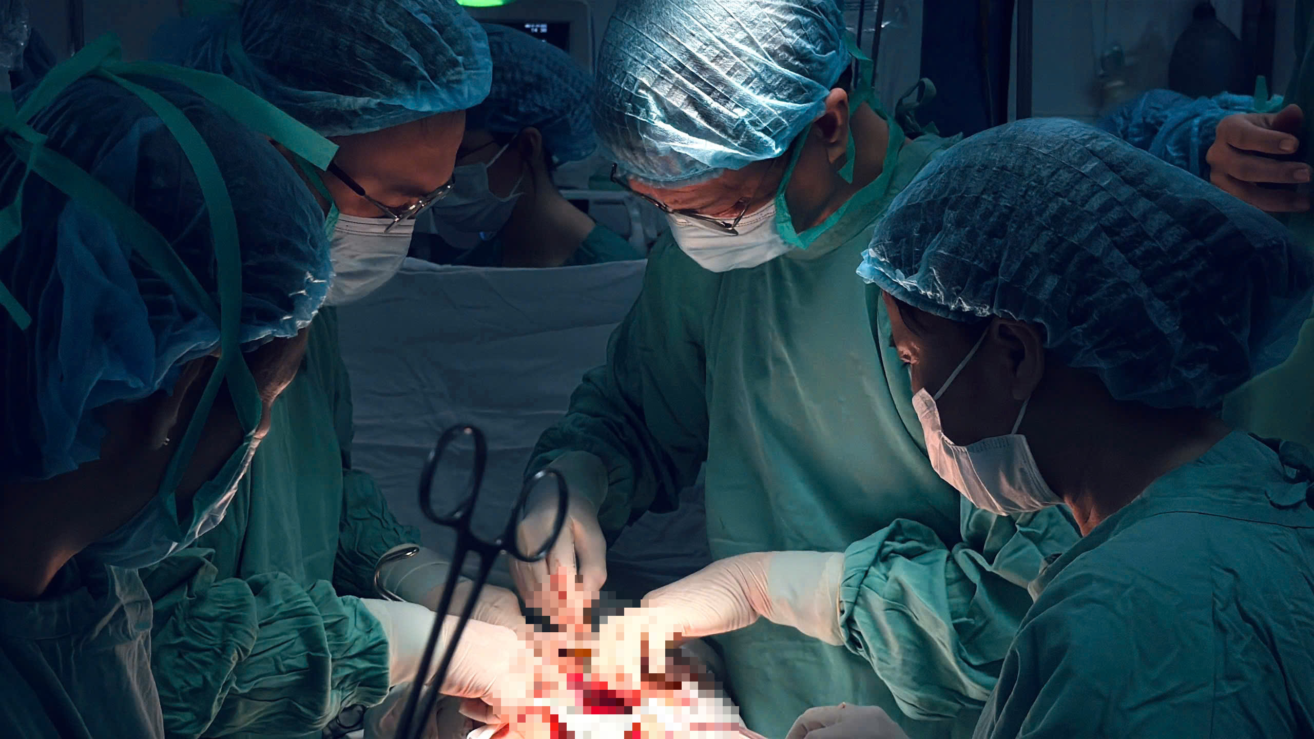 Sau hai ngày nhập viện, sáng 30/10, sản phụ bắt đầu chuyển dạ, buộc ê-kíp phải tiến hành mổ khẩn cấp trong điều kiện mưa lũ, điện bị gián đoạn. Ê-kíp liên chuyên khoa gồm khoa Phụ Sản cùng các khoa chuyên môn phối hợp để thực hiện ca phẫu thuật.