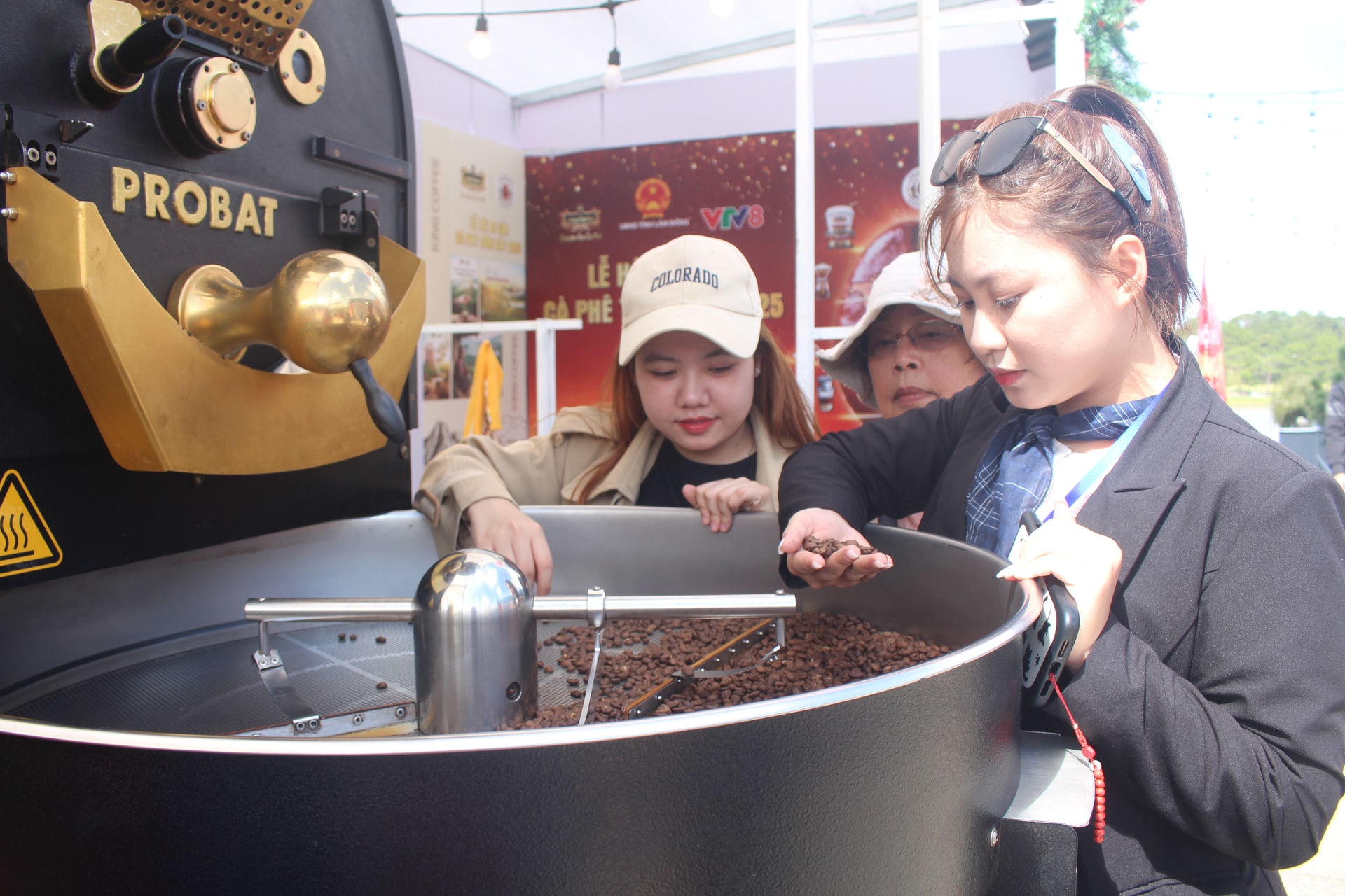 Du khách trẻ tìm hiểu công nghệ rang xay cà phê hiện đại trong không gian lễ hội
