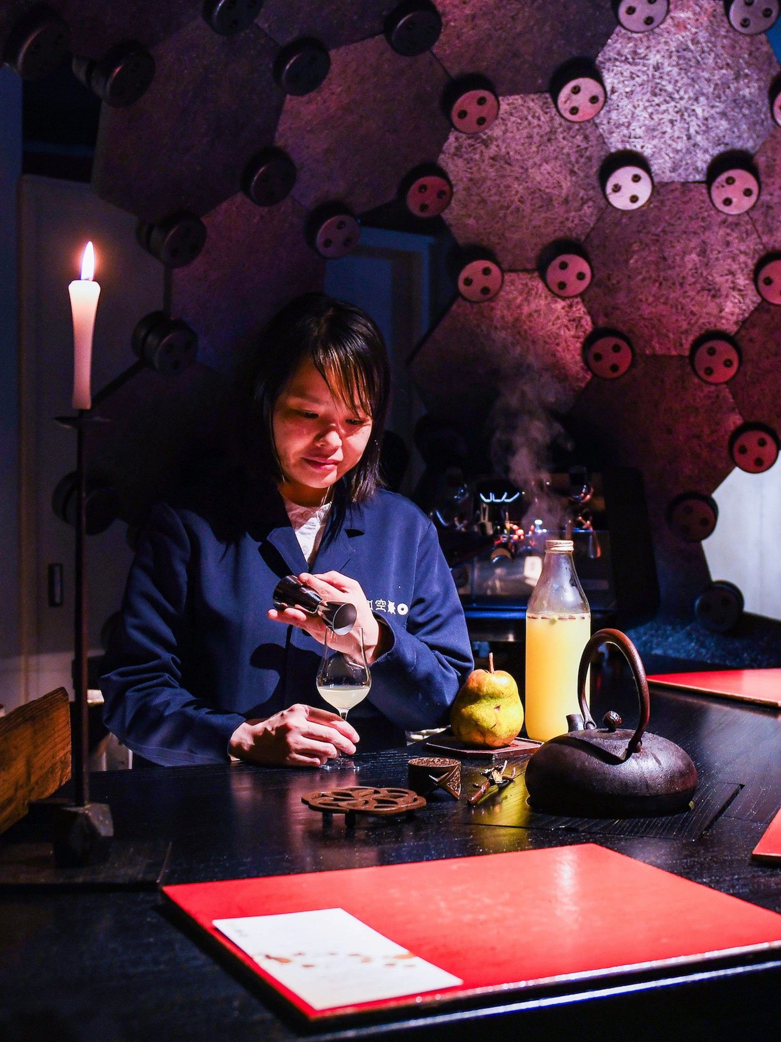 Trong không gian tĩnh lặng, barista mặc vest đen, tiếng chim hót nhẹ nhàng, giữa phòng là khối cầu đen bốn chỗ ngồi - trải nghiệm gợi nhớ đến trà đạo truyền thống của Nhật Bản, nơi mọi chi tiết đều được tính toán.